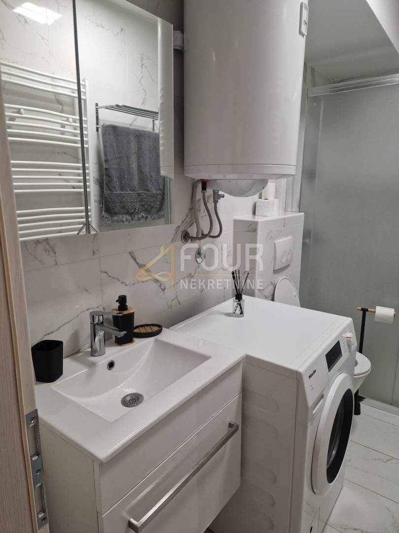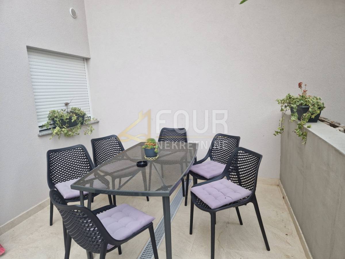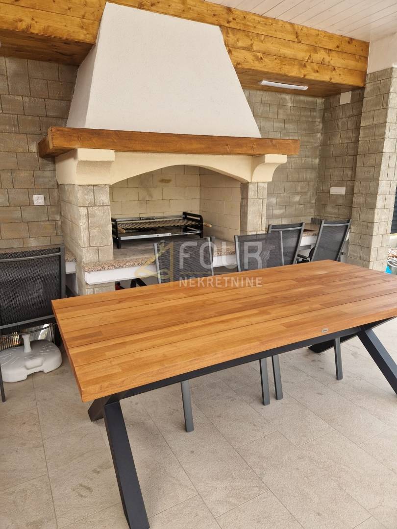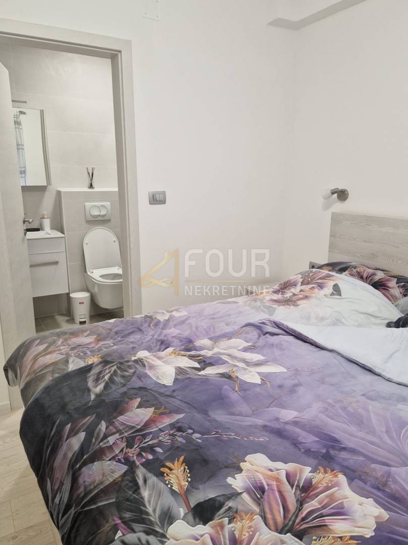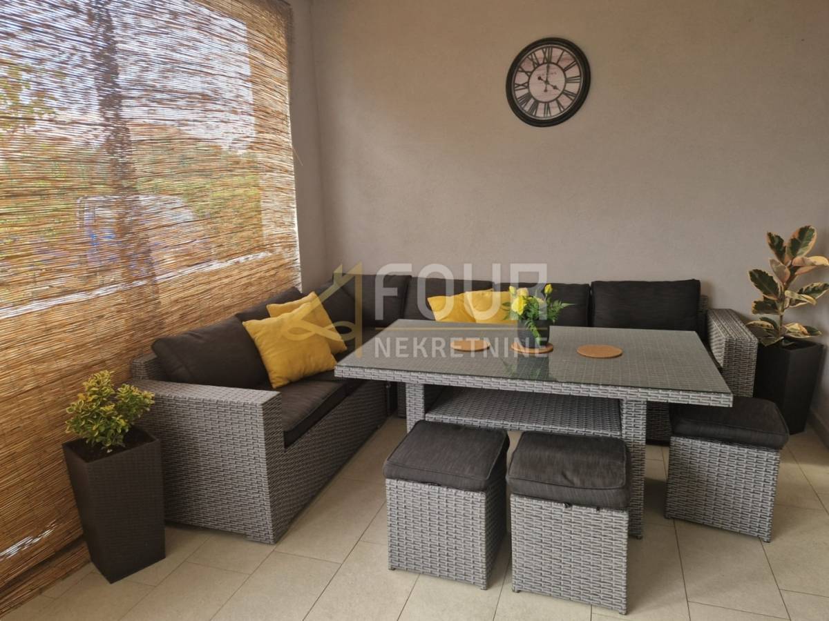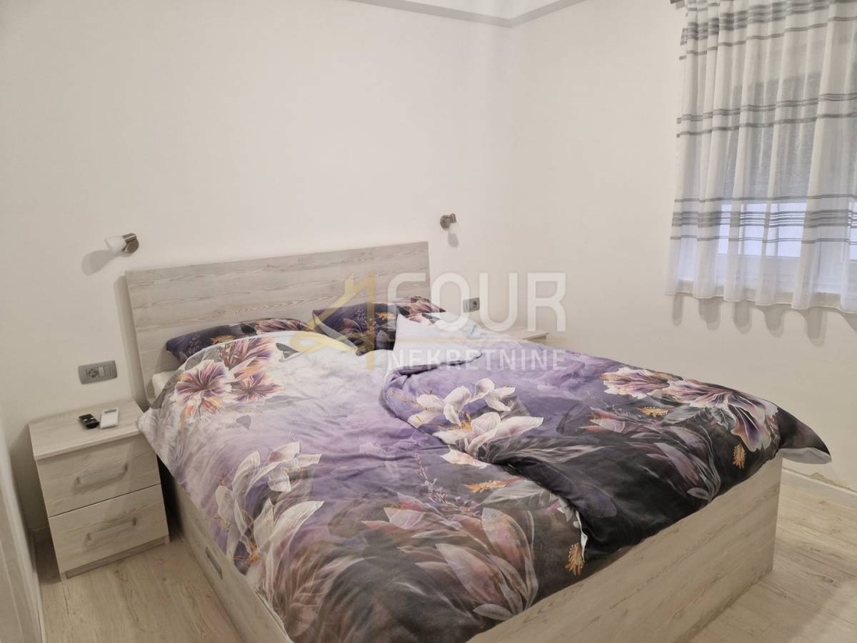 Raspored je iznimno funkcionalan i obuhvaća dvije spavaće sobe, od kojih master soba ima vlastitu kupaonicu, dodatnu spavaću sobu, dnevni boravak povezan s kuhinjom i blagovaonicom te izlaz na terasu i zajedničku okućnicu. U potpunosti je adaptiran 2023. godine, uključujući instalacije vode i struje, kupaonicu, keramiku, kao i krov i fasadu objekta. Opremljen je PVC stolarijom i klima uređajem te se prodaje potpuno namješten, s novim namještajem rađenim po mjeri.