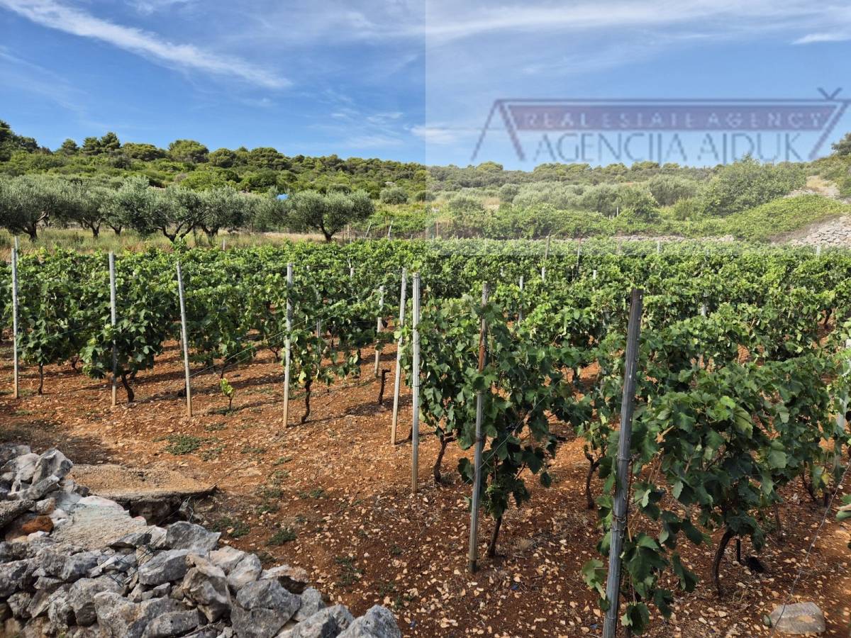 Na zemljištu se nalazi maslinik sa 70 održavanih maslina kao i vinograd sa 400 vinovih loza sorte Rukavac. Kompletno zemljište je ograđeno suhozidom i žicom.