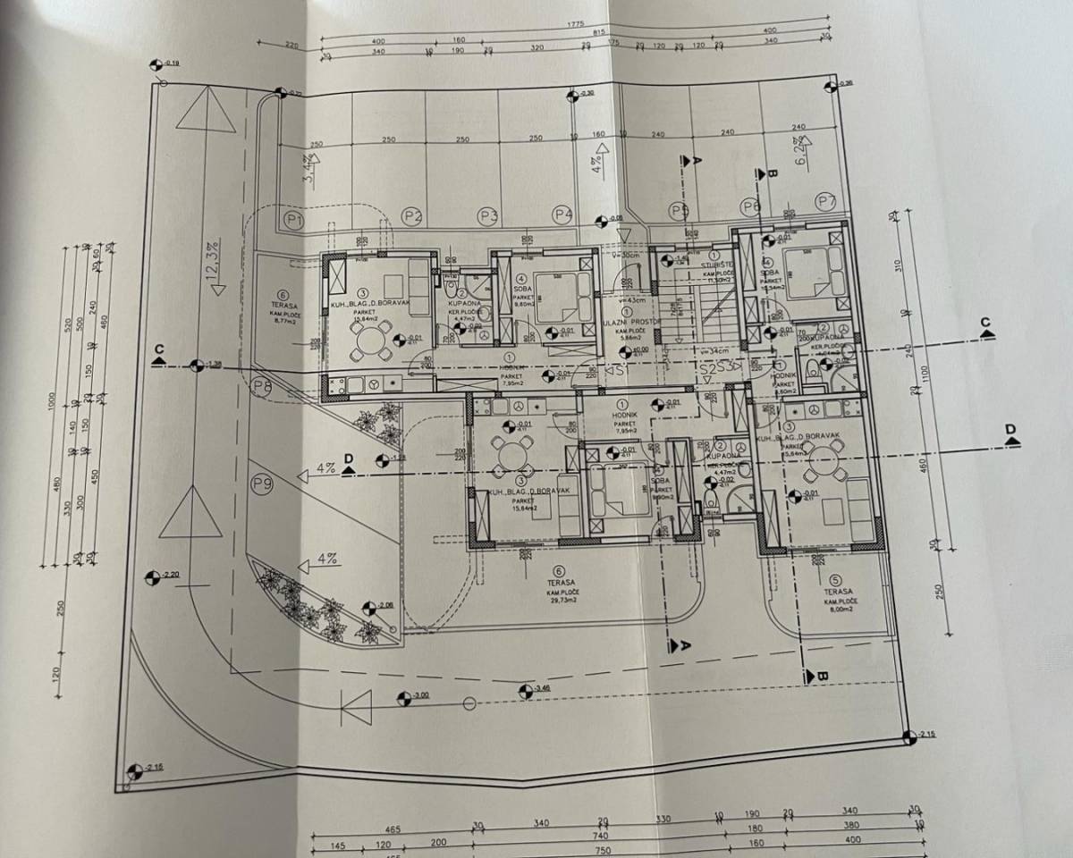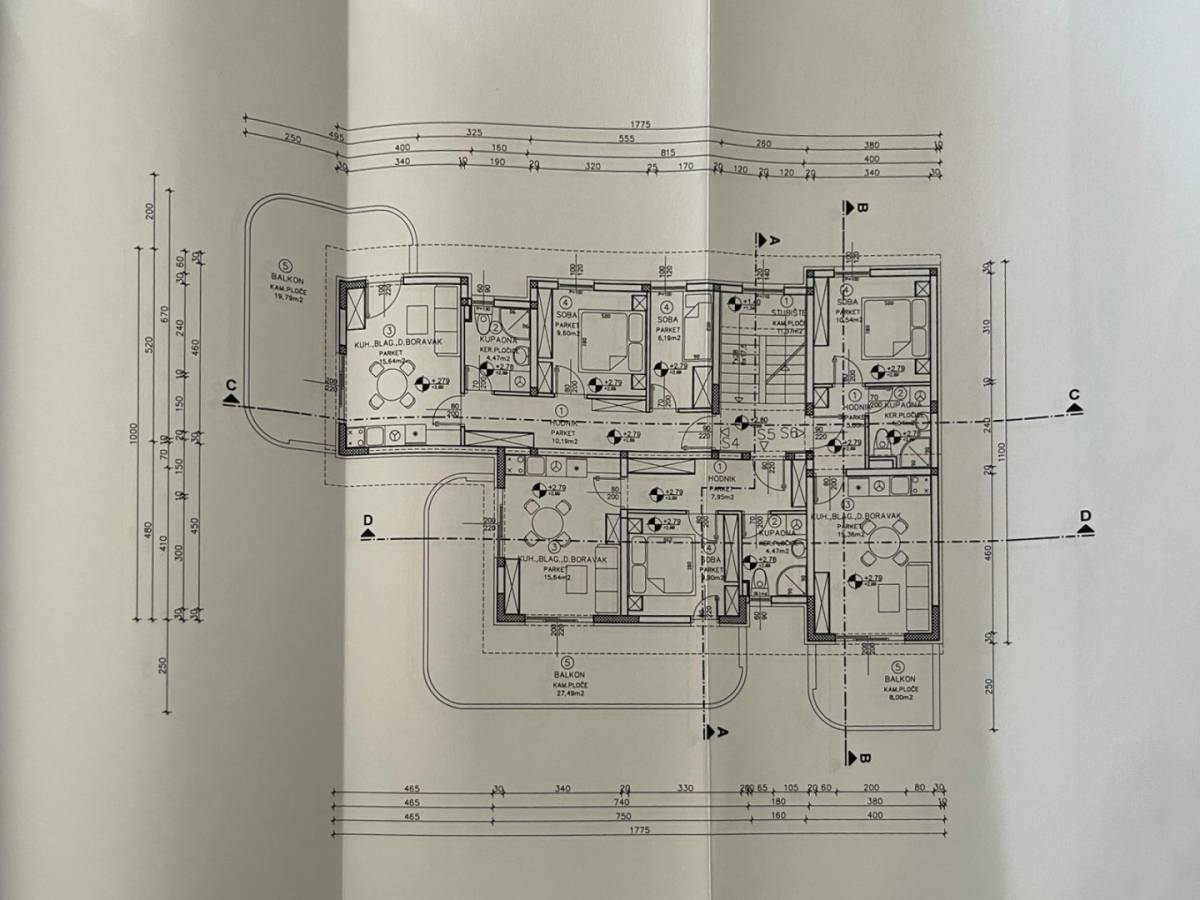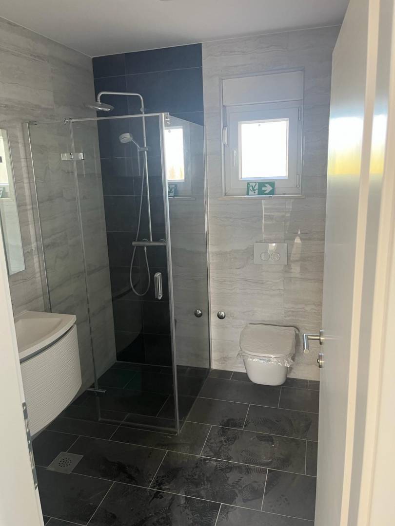 U lijepom malom mjestu na otoku Pagu, prvi red do mora, smjesti se ovaj lijepi dvosobni apartman od 58,54 m2. Nalazi se na prvom katu i ima pogled na more. Sastoji se od hodnika, kupaonice, dvije spavaće sobe, kuhinje s blagovaonicom i dnevnim boravkom iz kojih kroz staklenu stijenu izlazite na predivnu terasu od 20 m2 na kojoj možete uživati u pogledu na more i miru malog mjesta. Apartmanu pripada jedno parkirno mjesto.