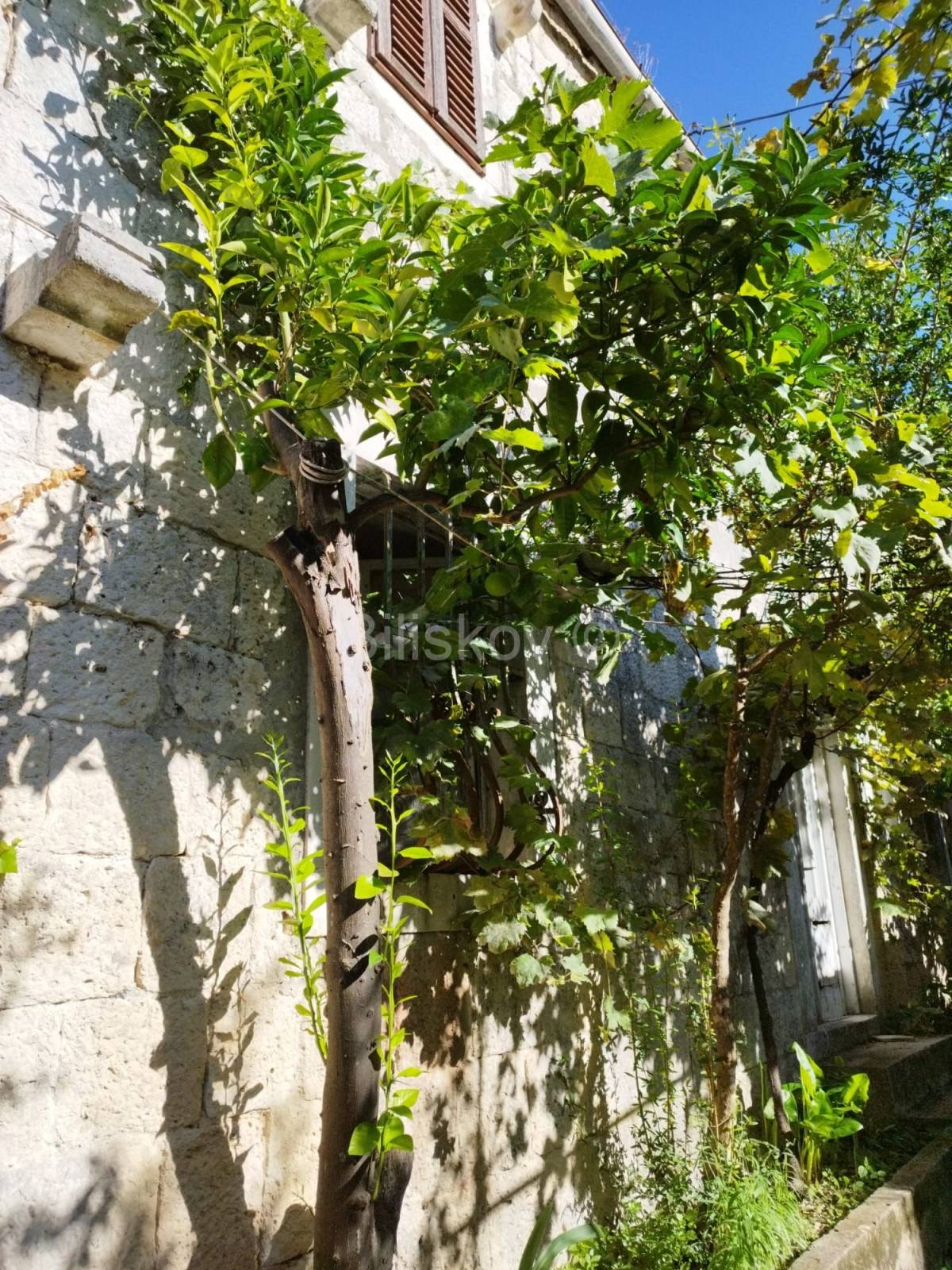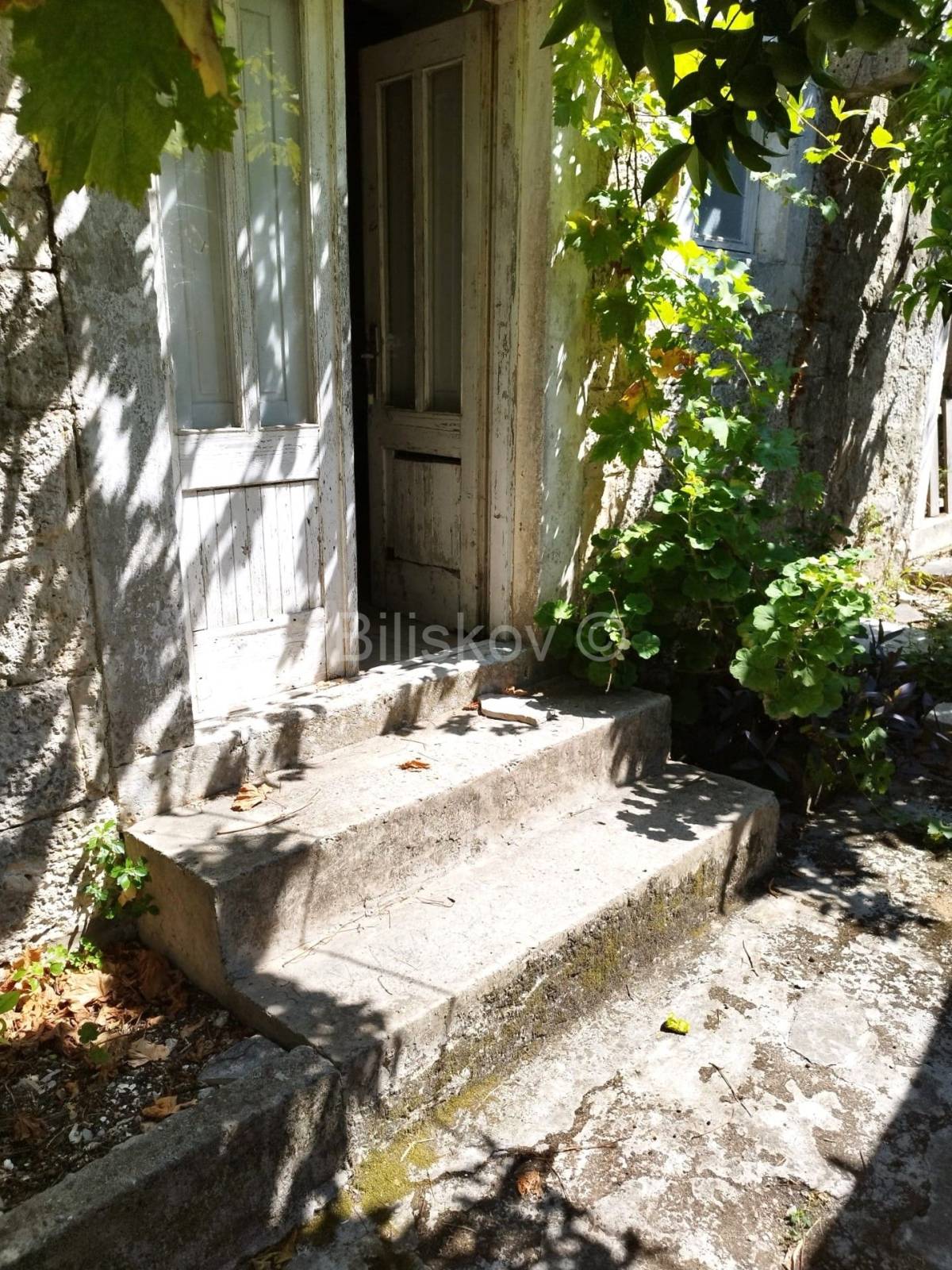 Pelješac, Viganj, dvojna kamena kuća na dvije etaže tlocrtne površine 58m2, nasuprot koje su dvije ruševine površina 61m2 i 36m2, šuma površine 58m2 i prolaz od 11m2.