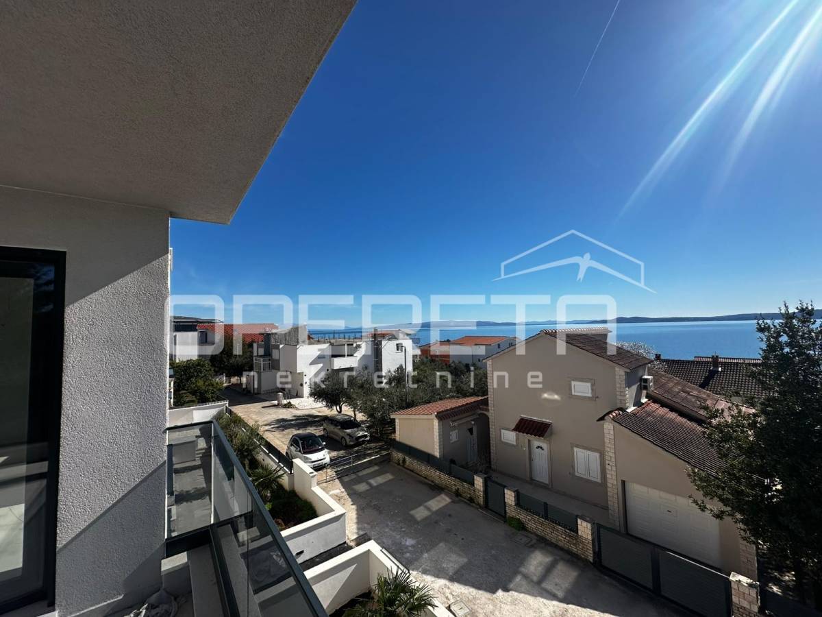 Penthouse se nalazi na drugom katu moderne zgrade u Okrugu Gornjem, udaljen svega 130 metara od mora i plaže, te pruža otvoren panoramski pogled na more i okolne otoke. Posebno ističe svoj vlastiti krovni bazen i ukupnu površinu koja uključuje 73,5 m² neto stambenog prostora, 66,92 m² terasa te 24,88 m² krovnog bazena, stvarajući savršen prostor za opuštanje i uživanje.