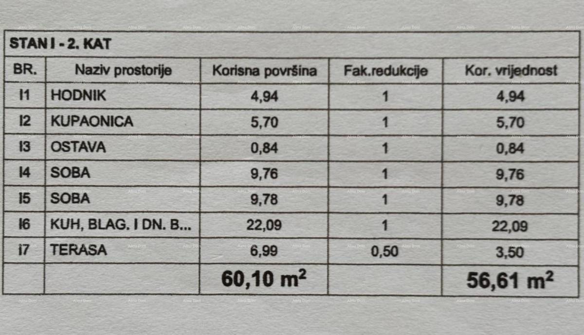 Površina stana: 60,10 m² (korisna površina 56,61 m²)