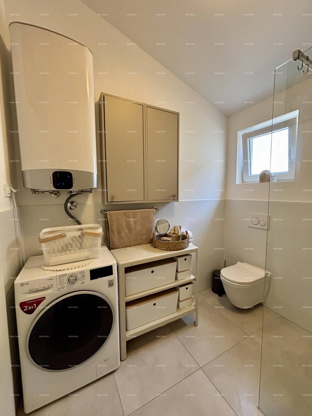 Pažljivo osmišljen novi stan, namijenjen vlastitom životu, nalazi se na 2. katu male stambene zgrade u zelenoj zoni blizu mora. Mirna okolica s razvijenom infrastrukturom i čistim zrakom.