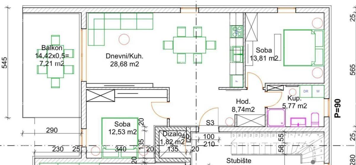• prostrani dnevni boravak s kuhinjom i blagovaonicom