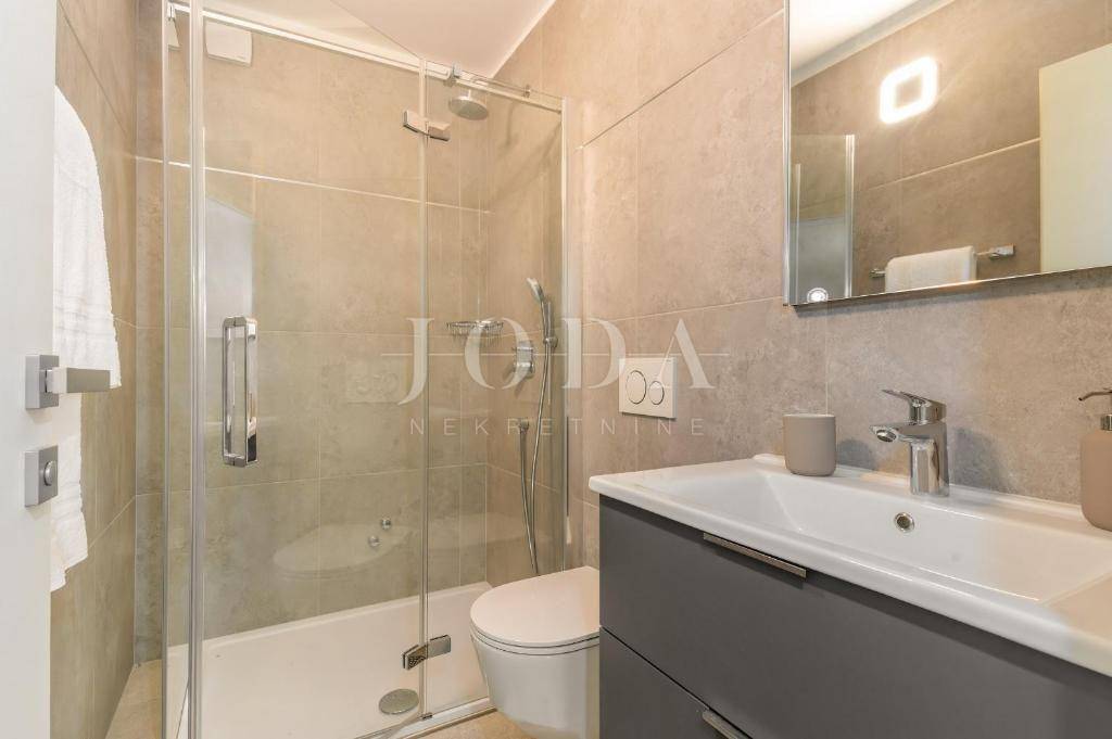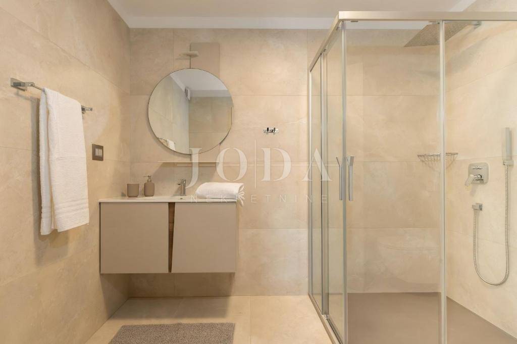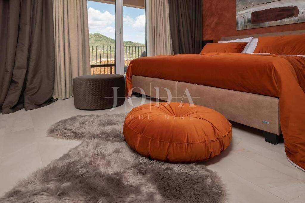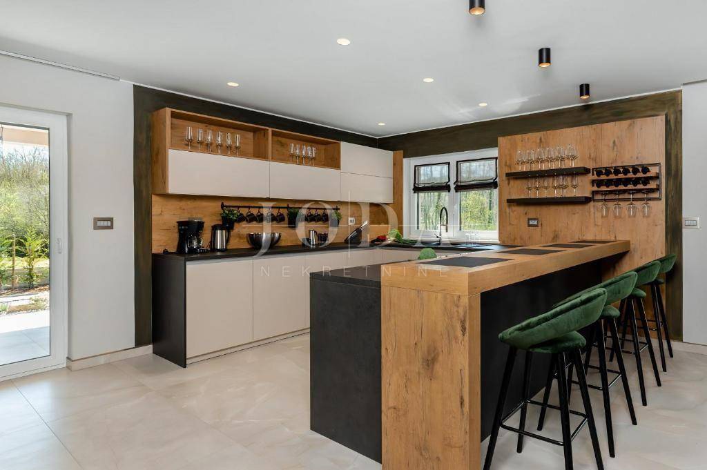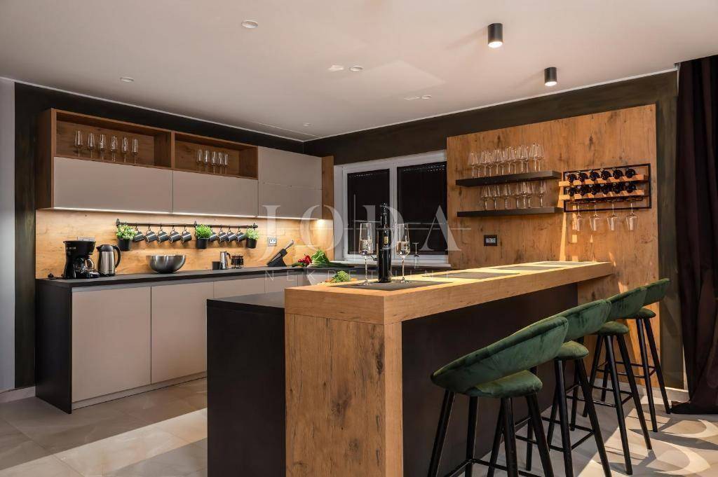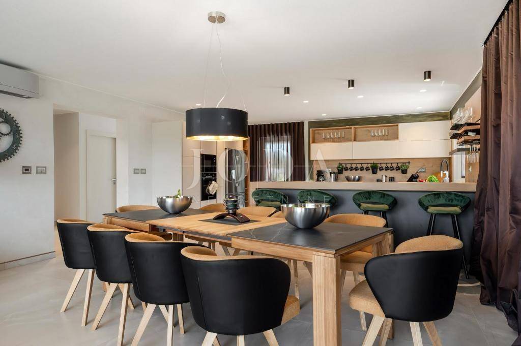 Ova luksuzna Villa moderno je i dizajnerski namještena i opremljena, u svim prostorijama postavljeni su klima uređaji, te podno grijanje putem dizalice topline.