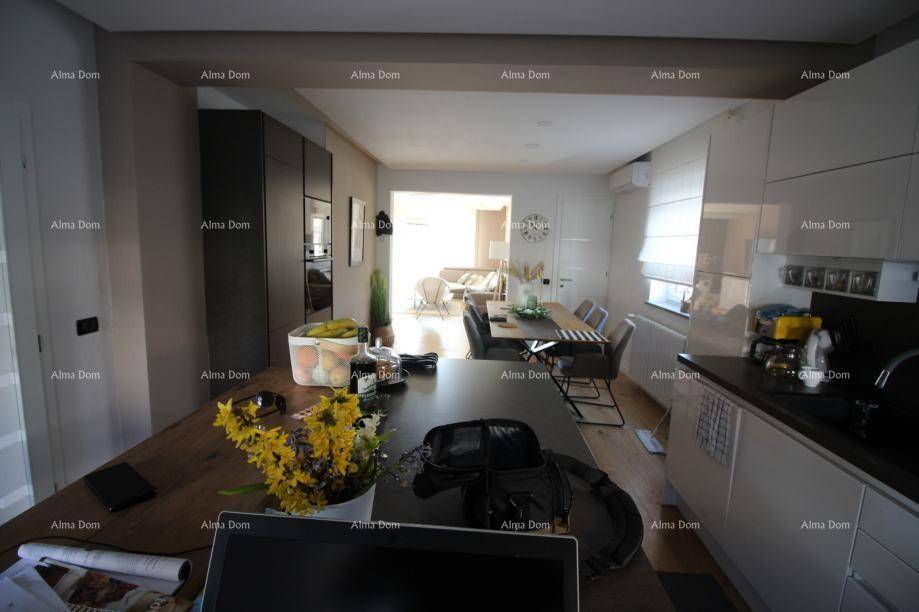 i prostran stan koji obuhvaća dvije spavaće sobe, dnevni boravak površine 27 m², kuhinju s blagovaonicom od 26 m² (ukupno 53 m²), dvije kupaonice s WC-om te dodatnu prostoriju namijenjenu uredu ili recepciji.
