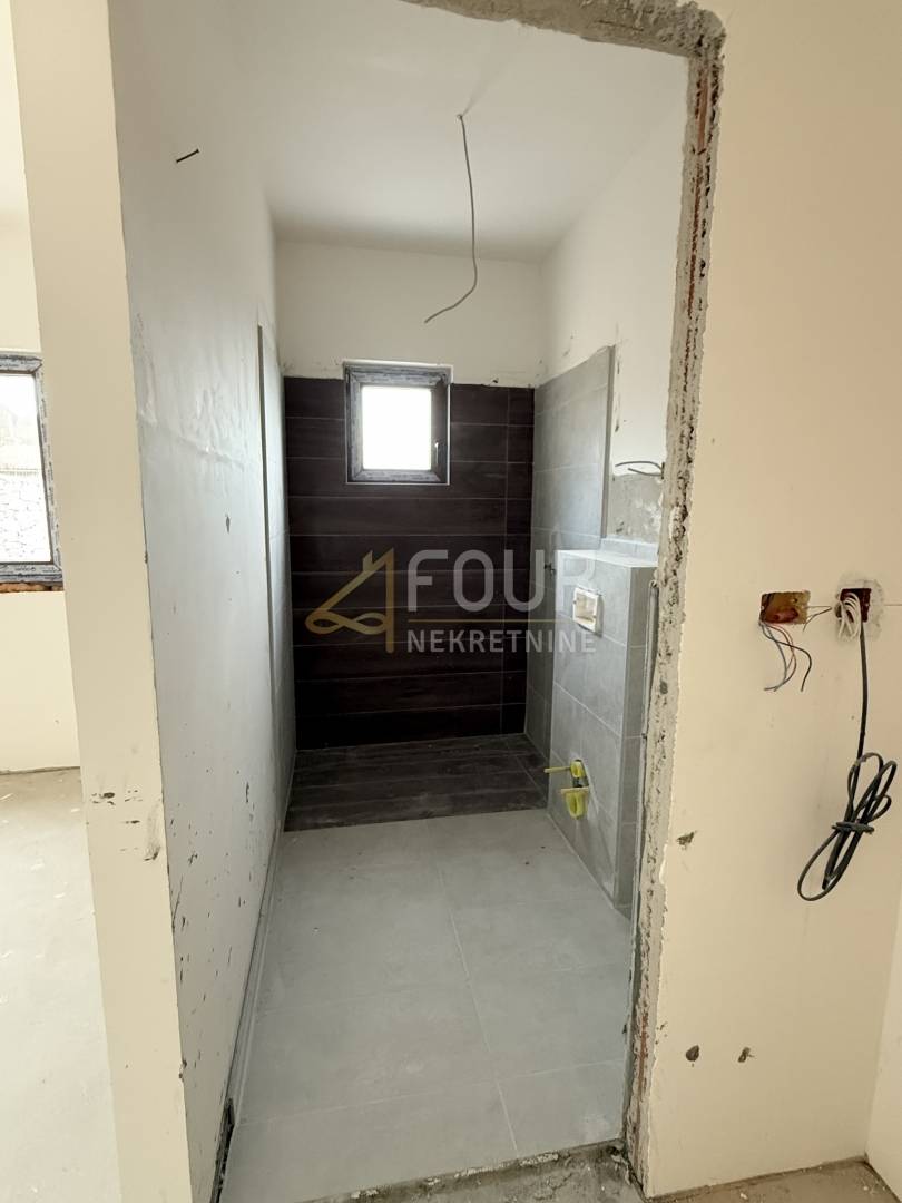 Nekretnina je koncipirana kao dvojna kuća s dva potpuno odvojena dvoetažna stana, svaki sa svojim zasebnim ulazom, dvorištem, bazenom i vanjskim sadržajima. Prema projektu, svaki stan ima približno 150 m2, dok ukupna stambena površina iznosi oko 300 m2. Stanovi su zrcalno simetrični i projektirani s naglaskom na komfor, privatnost i luksuzan stil života. U prizemlju svakog stana predviđeni su dnevni boravak, blagovaonica i kuhinja u otvorenom konceptu, gostinjski toalet, sauna te jedna spavaća soba s vlastitom kupaonicom. Na katu se nalaze još tri spavaće sobe, svaka sa svojom kupaonicom, što ukupno čini četiri spavaće sobe po stanu.