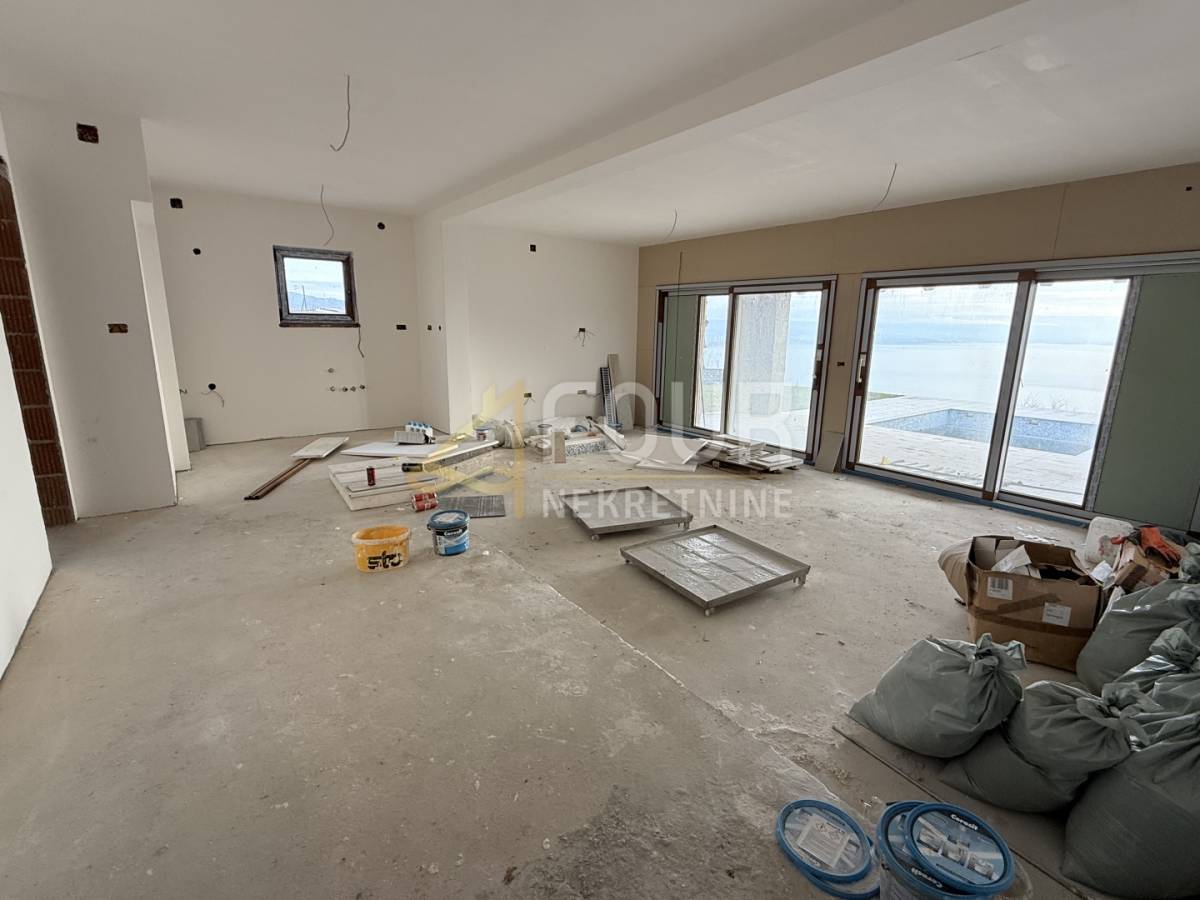 Prodaje se samostojeća novogradnja u Poljanama, smještena na iznimnoj lokaciji s panoramskim pogledom na more. Kuća je završena 2023. godine u visokom roh-bau stanju i predstavlja rijetku priliku za investitore ili kupce koji traže luksuznu nekretninu velikog potencijala u okruženju prirode i ekskluzivnih susjednih objekata.