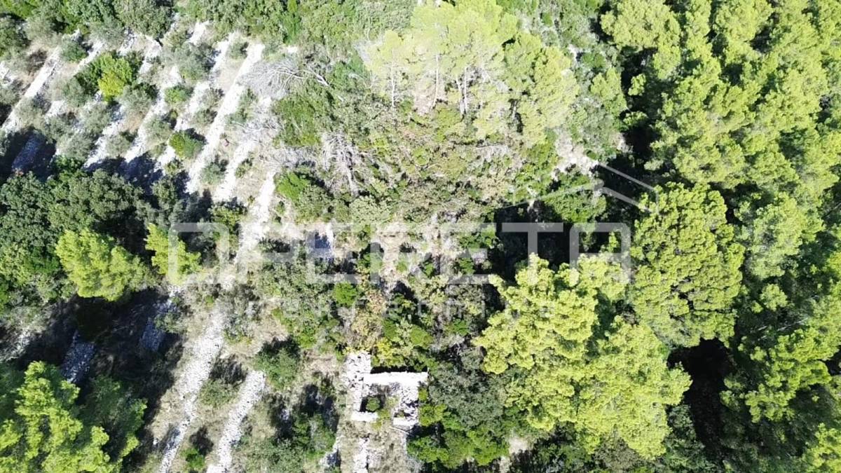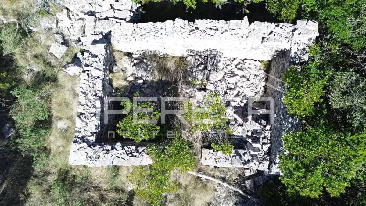 Na parceli se nalazi kamena kućica površine oko 26 m², evidentirana u katastru, bez krova, te nekoliko suhozida koji ocrtavaju granice zemljišta. Do lokacije vodi put upisan u katastarske planove, što omogućuje jednostavan pristup.