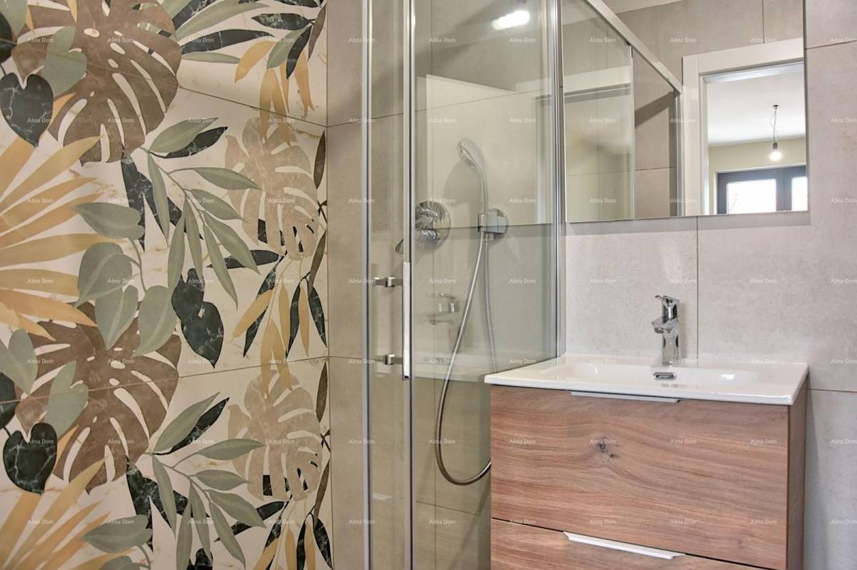 Penthouse se sastoji od velikog dnevnog boravka površine 68 m2, 5 spavaćih soba; svaka spavaća soba ima vlastito kupatilo. Prekrasna natkrivena terasa površine 29 m2 sa božanstvenim otvorenim pogledom od 180 stupnjeva na more i 1400 godina stari grad Poreč. Velika krovna terasa površine od 188 m2 daje osjećaj snage i moći jer se on nalazi iznad svih ostalih kuća i ima nesmetan i otvoren pogled od 180 stupnjeva na more i stari grad. Na toj krovnoj terasi ostavljeni su priključci tako da se može instalirati ljetna kuhinja, tuš i jacuzzi. Penthouse je zapravo kao kuća za nekoga tko ne voli zanimati se sa vrtom i ne želi imati troškove za održavanje, troškove zalijevanja i košnje trave. Visoka kvaliteta gradnje i dostupnost svih sadržaja; trgovački, kulturni, obrazovni i rekreacijski sadržaji potrebni za kvalitetan obiteljski život su elementi koji krase ovaj penthouse u ovoj urbanoj zgradi sa samo 5 stanova. Dolaskom svojim autom u garažu liftom se stiže do penthousa. Vlasnik penthousa ima ključ za ići liftom do penthousa i može ga samo on koristiti; drugi stanari ne mogu. Penthouse se prodaje bez namještaja jedino što je opremljena su kupatila.