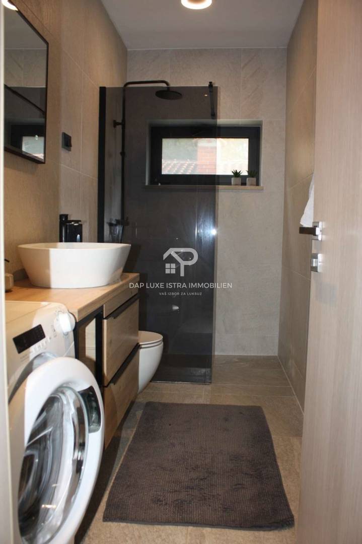 U mirnom i uređenom dijelu Poreča nudi se ovaj potpuno novi, moderno dizajniran stan od 53 m2 — kompaktan, elegantan i iznenađujuće prostran zahvaljujući pametnom rasporedu i obilju prirodnog svjetla koje ulazi kroz velike staklene stijene.
