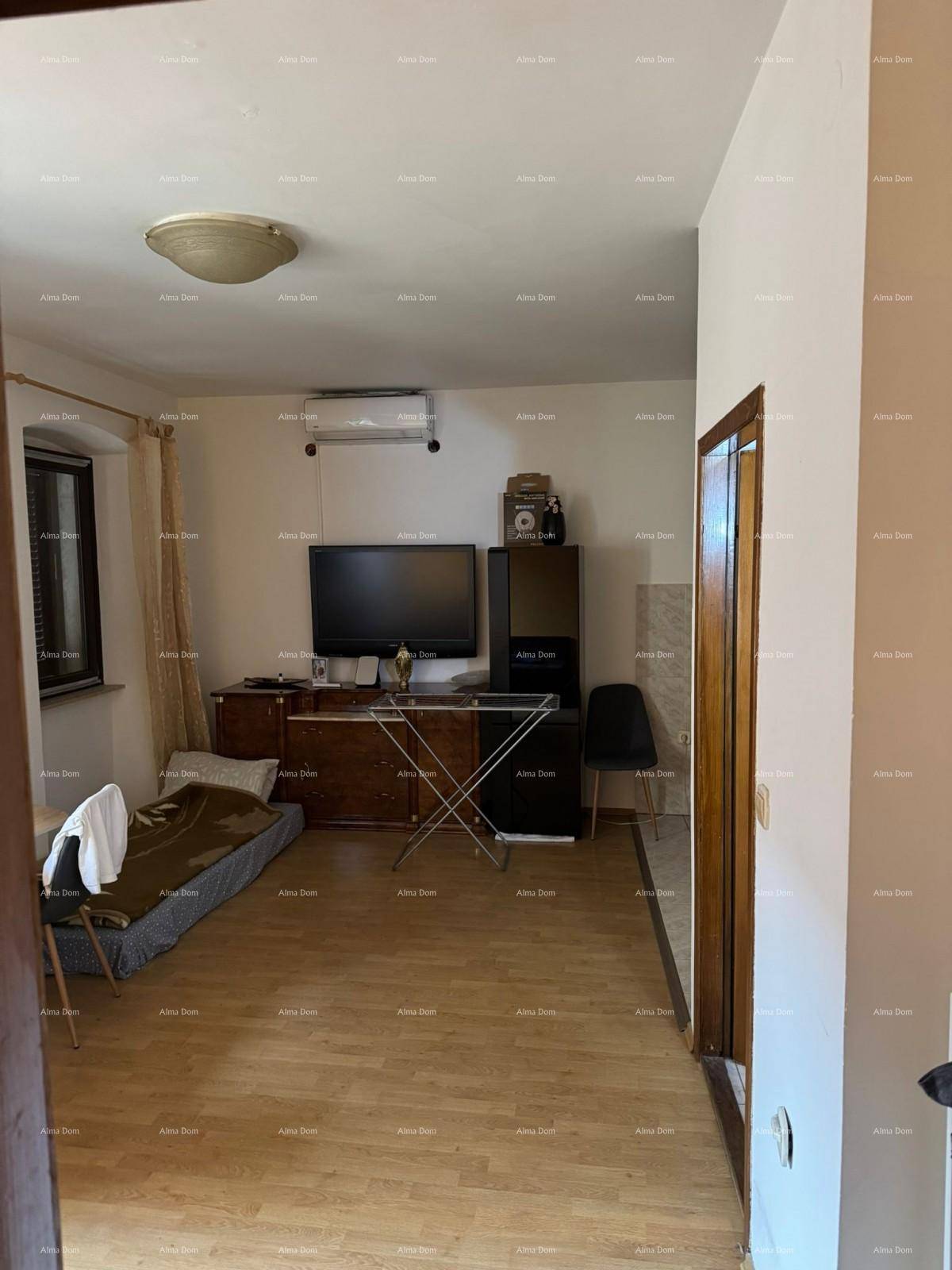 Na prodaju je šarmantan stan površine cca 50 m², smješten na drugom katu venecijanske stambene zgrade u samom srcu Poreča.