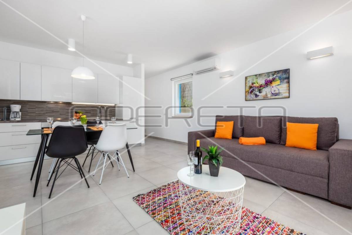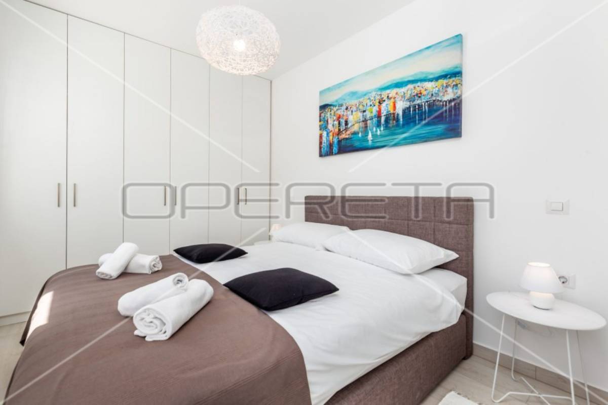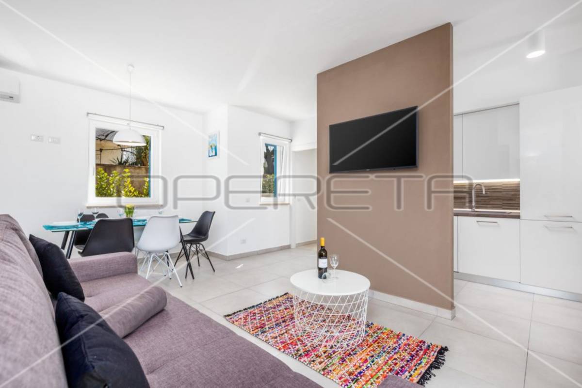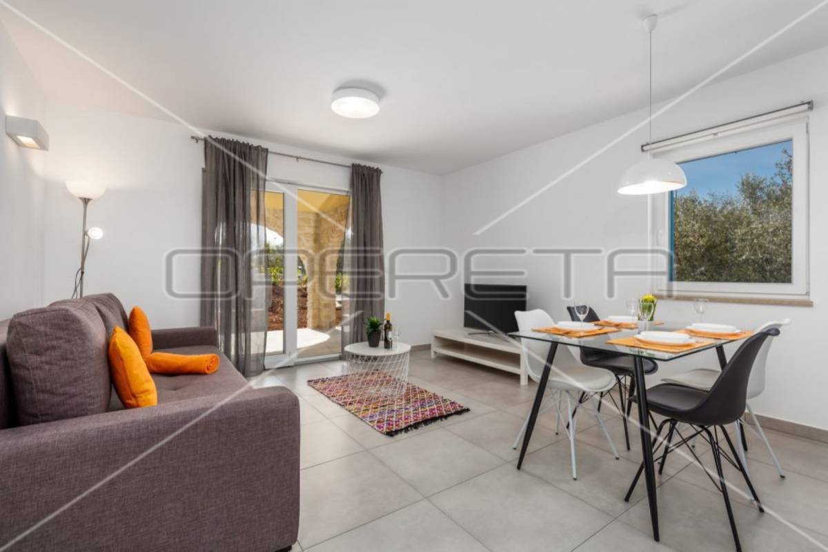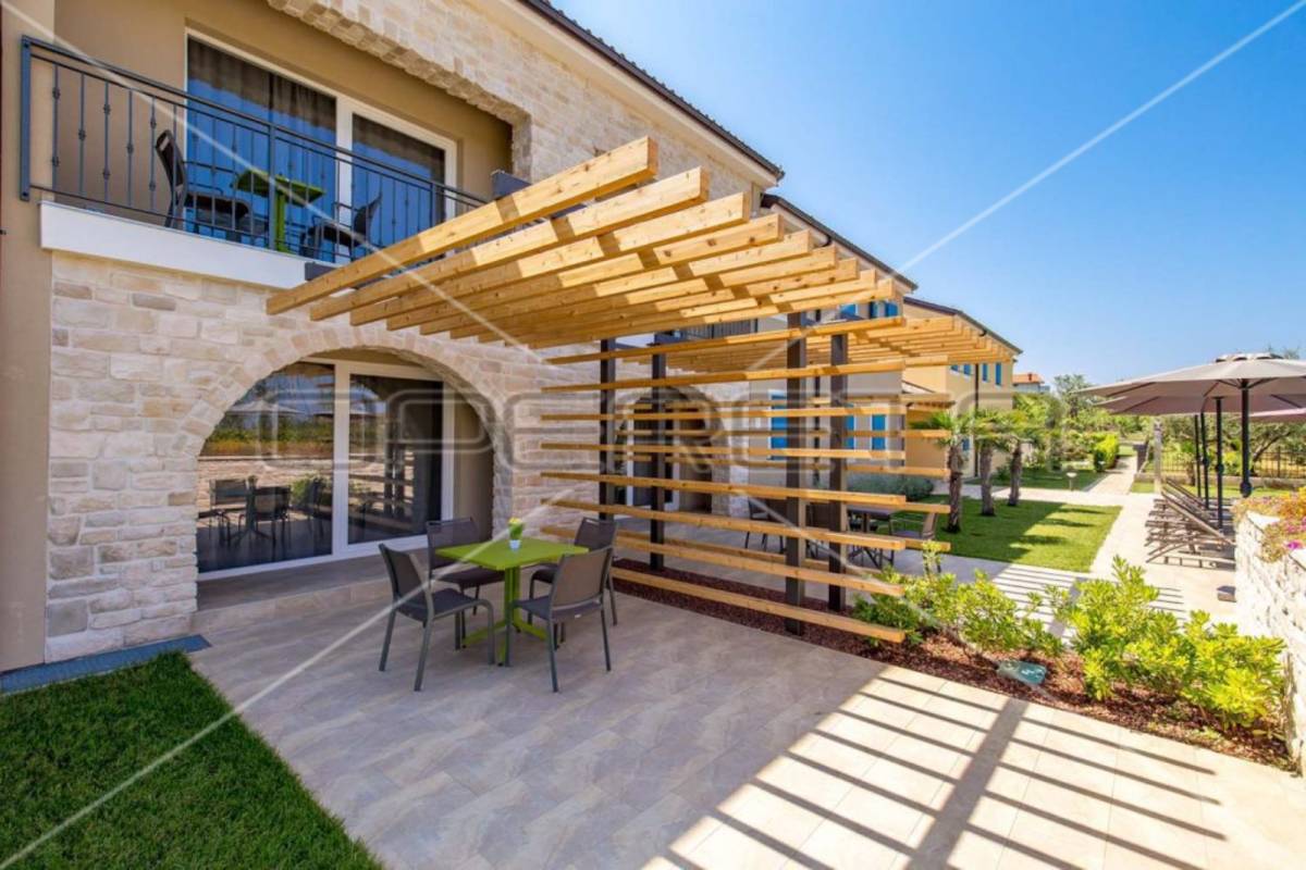 Kompleks je okružen prekrasnim mediteranskim vrtom. Vanjski prostor također se može pohvaliti prostranim bazenom od 60 m2, jacuzzijem, terasom za sunčanje s ležaljkama i dječjim igralištem.