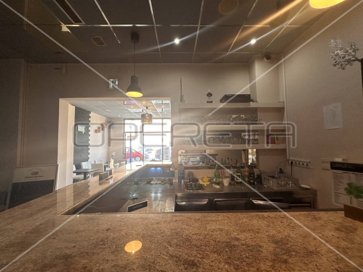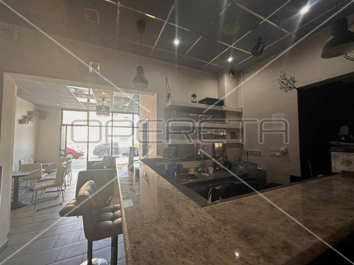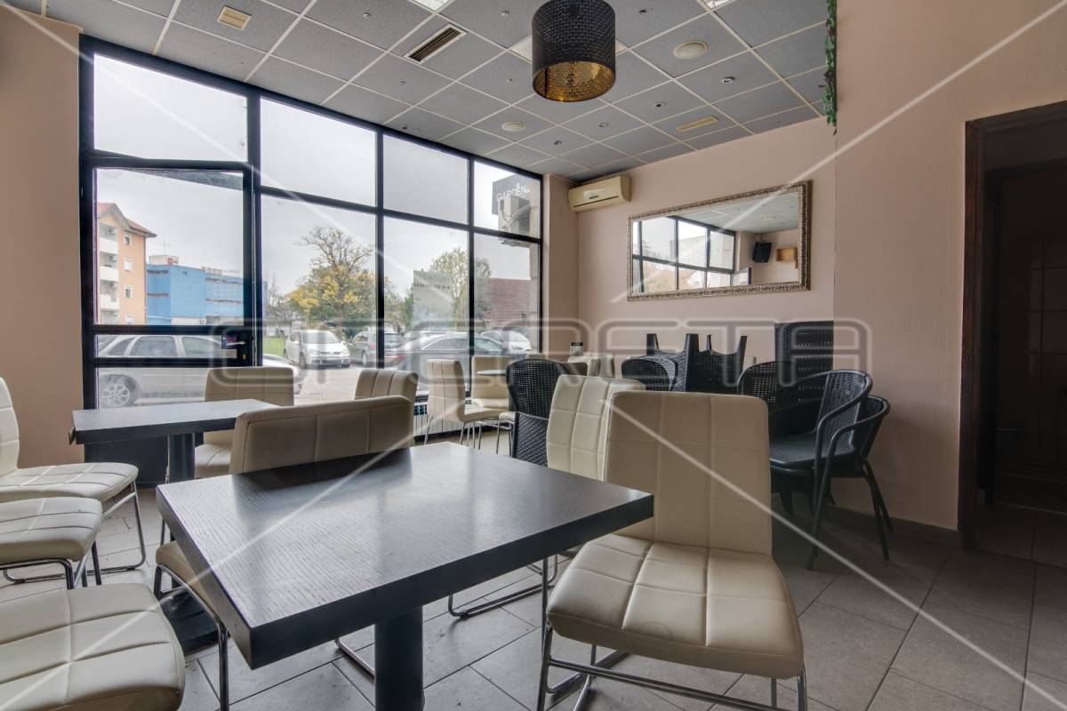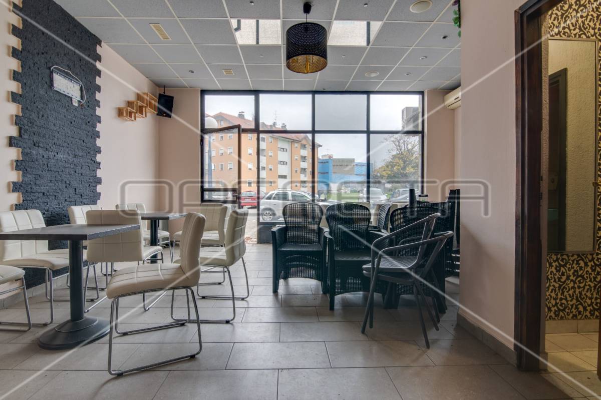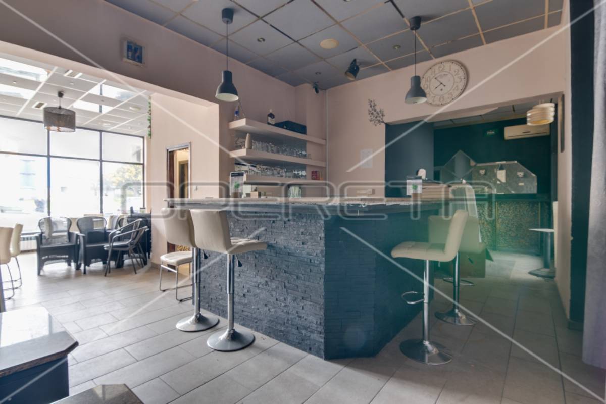 Prostor je prethodno korišten kao kafić, a unutarnji dio obuhvaća oko 70 m², adaptiran posljednji put 2010. godine, te je potpuno spreman za nastavak poslovanja. Opremljen šank omogućava brz početak ugostiteljske djelatnosti, dok prostrani stakleni otvori prema glavnoj ulici pružaju obilje prirodnog svjetla i ističu prostor izvana, čime ga čine savršenim za izlog ili druge poslovne namjene.
