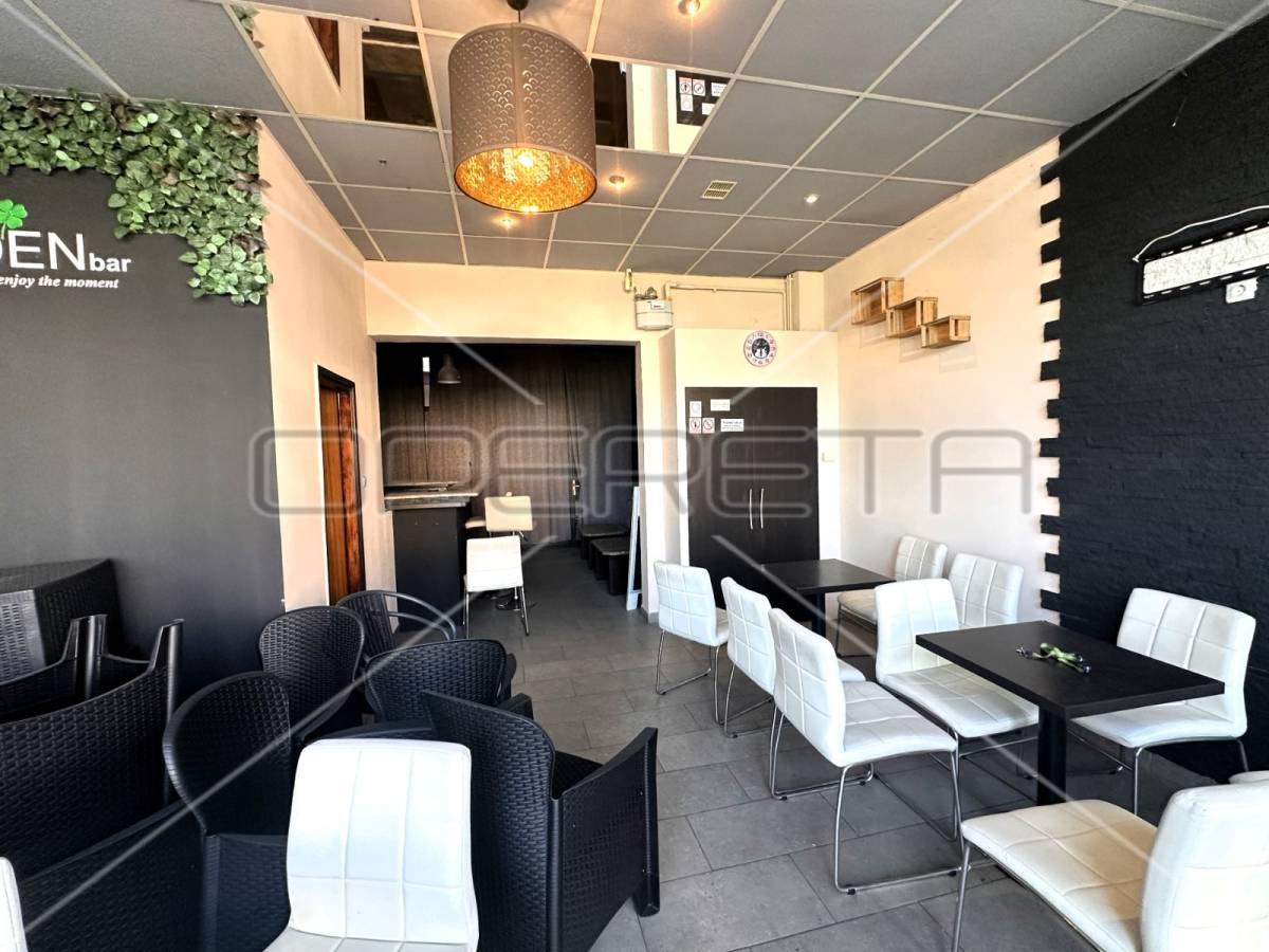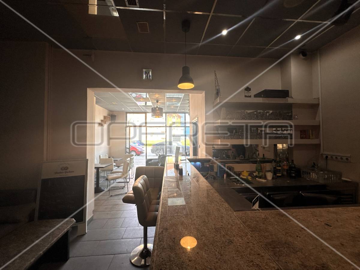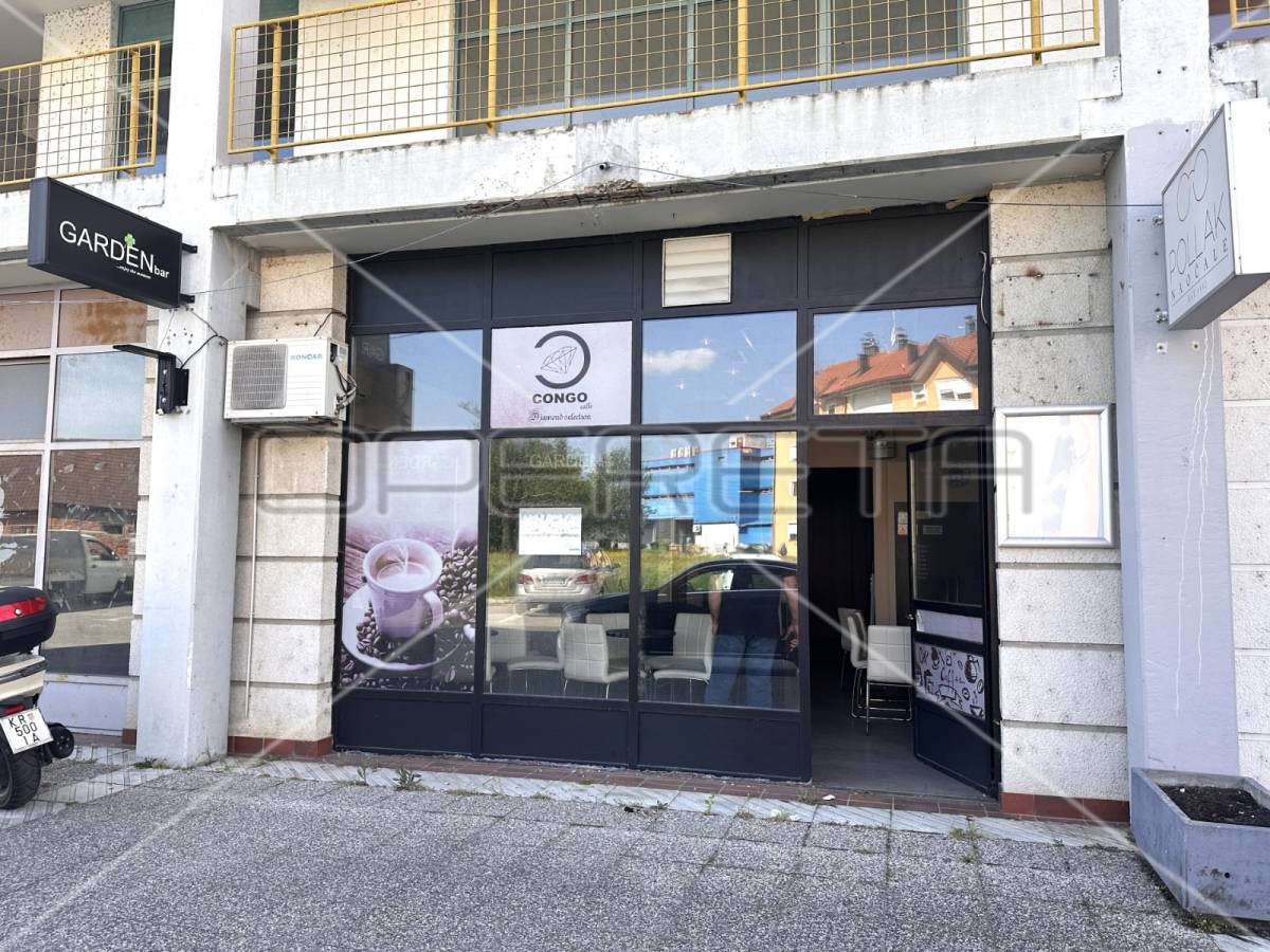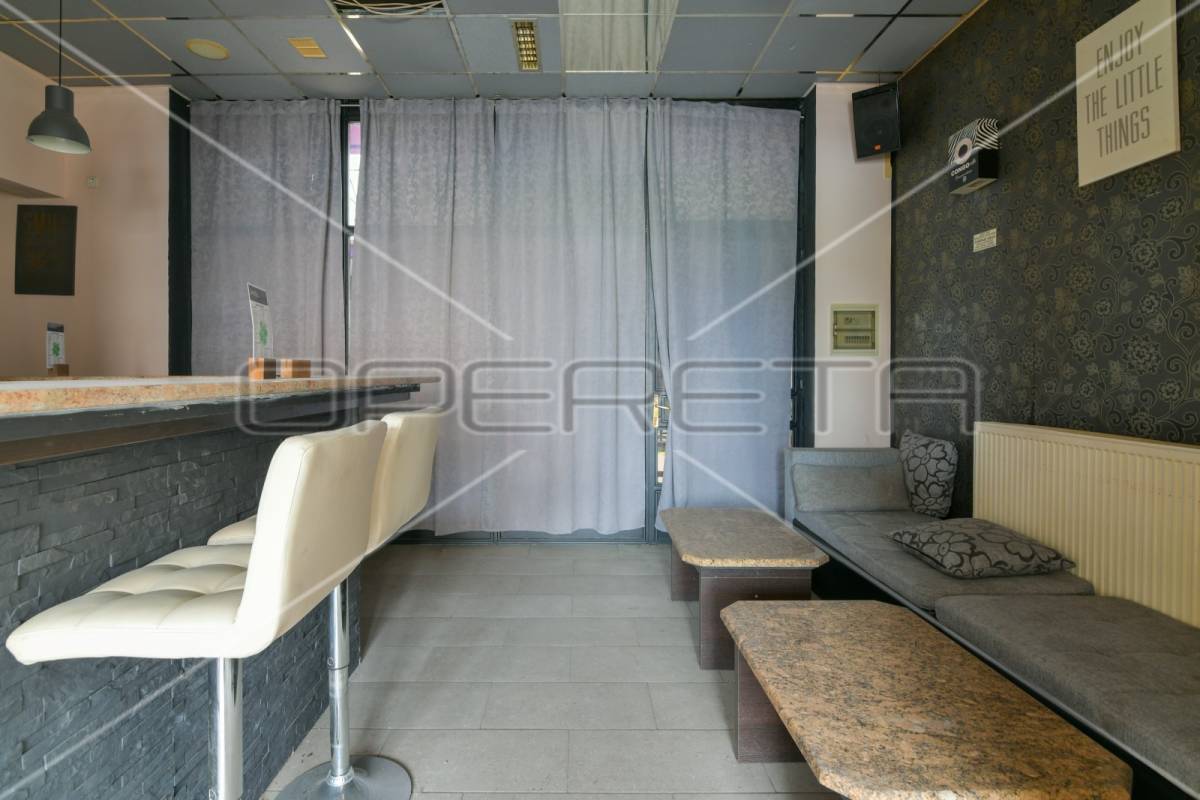 Prostor je prethodno korišten kao kafić, a unutarnji dio obuhvaća oko 70 m², adaptiran posljednji put 2010. godine, te je potpuno spreman za nastavak poslovanja. Opremljen šank omogućava brz početak ugostiteljske djelatnosti, dok prostrani stakleni otvori prema glavnoj ulici pružaju obilje prirodnog svjetla i ističu prostor izvana, čime ga čine savršenim za izlog ili druge poslovne namjene.