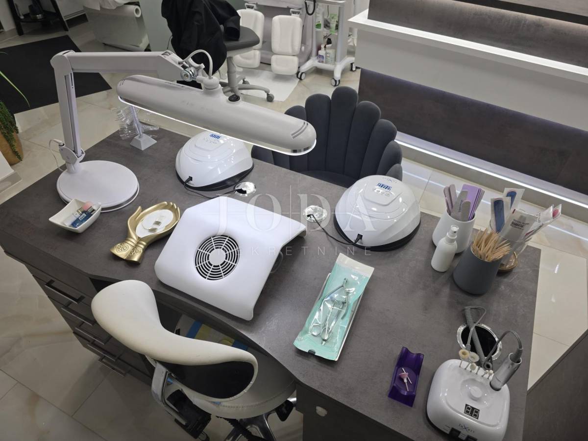 Prostor je u potpunosti opremljen za kozmetički salon sa svom potrebnom opremom i sa uhodanim poslovanjem i stalnim klijentima.