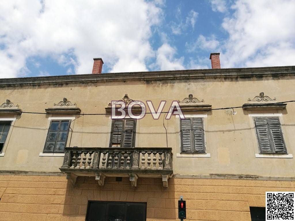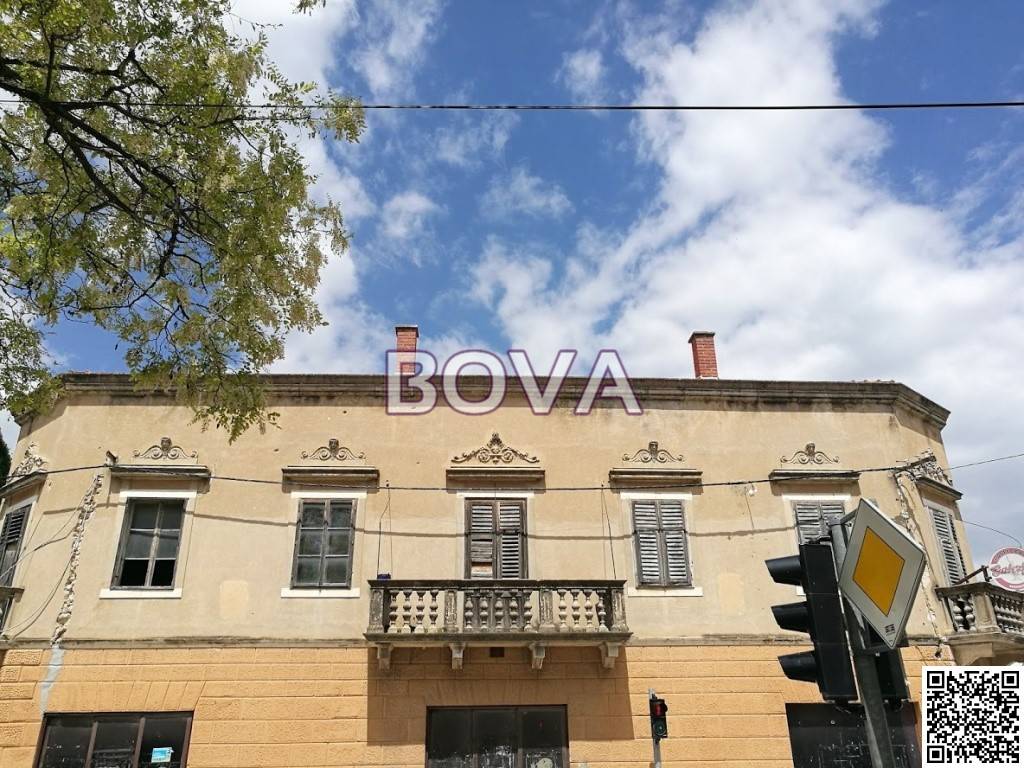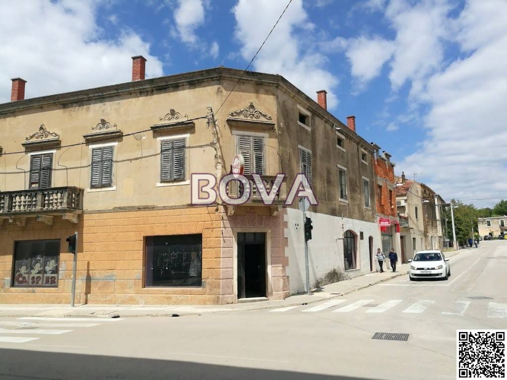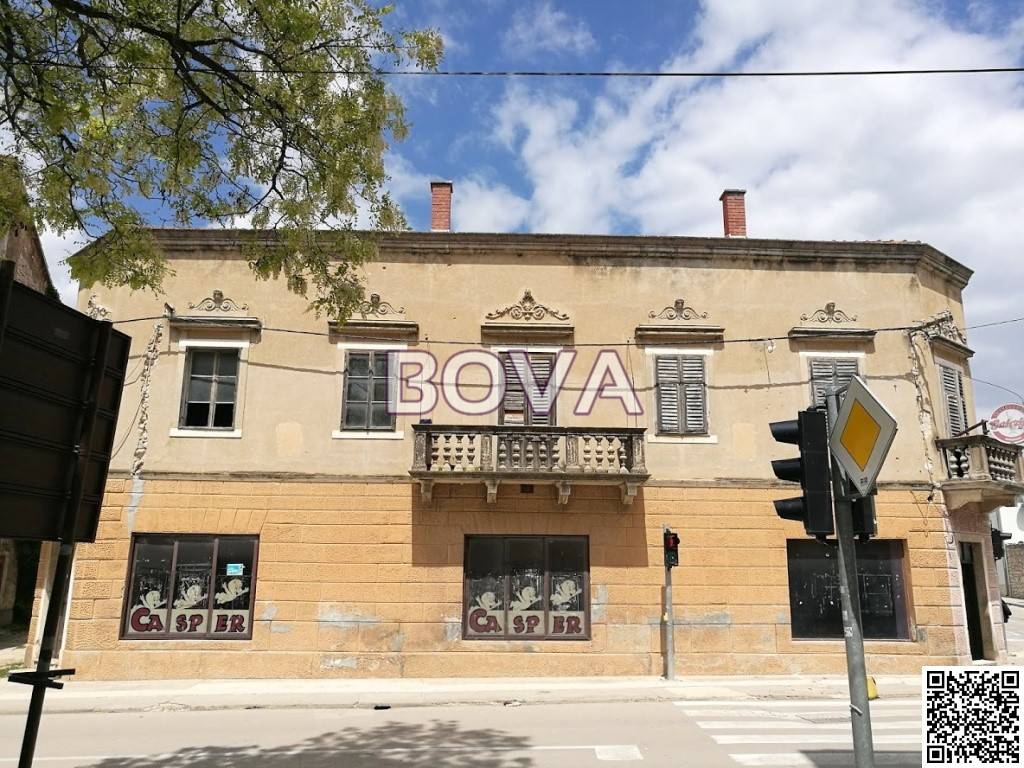 BENKOVAC – *PRILIKA* Prodaje se poslovno stambeni objekt u centru Benkovca na adresi: Šetalište kneza Branimira 53, ukupne površine 680 m2 (prizemlje + kat). Površina prizemlja cca. 400 m2, od čega 250 m2 poslovnog prostora. Površina prvog kata cca. 280 m2. Objekt je izgrađen od kamena, reprezentativna je historicistička uglovnica sa elementima interpretacije mletačkog baroka na balustradama ugaonih i centralnih balkona glavnog pročelja te ornamentalnim zabatima iznad prozora prvog kata. Objekt je izgrađen početkom 20. stoljeća za obitelj imućnog trgovca te ima status zaštićenog kulturnog dobra. Građevina je poslovno-stambene namjene smještena u samom centru naselja te ima funkcionalnu tlocrtnu organizaciju: lokal u prizemlju, trgovačke ili ugostiteljske namjene (cca. 200 m2), komforno stanovanje (5 soba) na prvom katu i spremište u ventiliranom potkrovlju te četiri ulaza, stepeništa i hodnici. Površina zemljišta je 535 m2. Poslovni prostor je renoviran te se može odmah koristiti. Prvi kat se mora renovirati, primarno drvene grede stropa i prozori. Na čestici preko puta kuće, gdje je donedavno bila ljetna terasa poslovnog prostora, može se predvidjeti prema dogovoru parking za nekoliko automobila – površina tog zemljišta je 400 m2. O nekadašnjem sjaju kuće i danas govore kameni zidovi debljine 70 cm, bogati ornamenti, mramorni oluk, atrij itd. Uz renovaciju, čarobni vrt u atriju, mletački barok na balustradama kamenih balkona, kuća bi mogla ponovno poprimiti nekadašnji sjaj najljepše kuće u Benkovcu. Tu je i vrlo velik poslovni prostor koji je potpuno izdvojen od stambenog prostora te potencijalno vrlo vrijedan. Vlasništvo uredno; Cijena 240.000 eura.