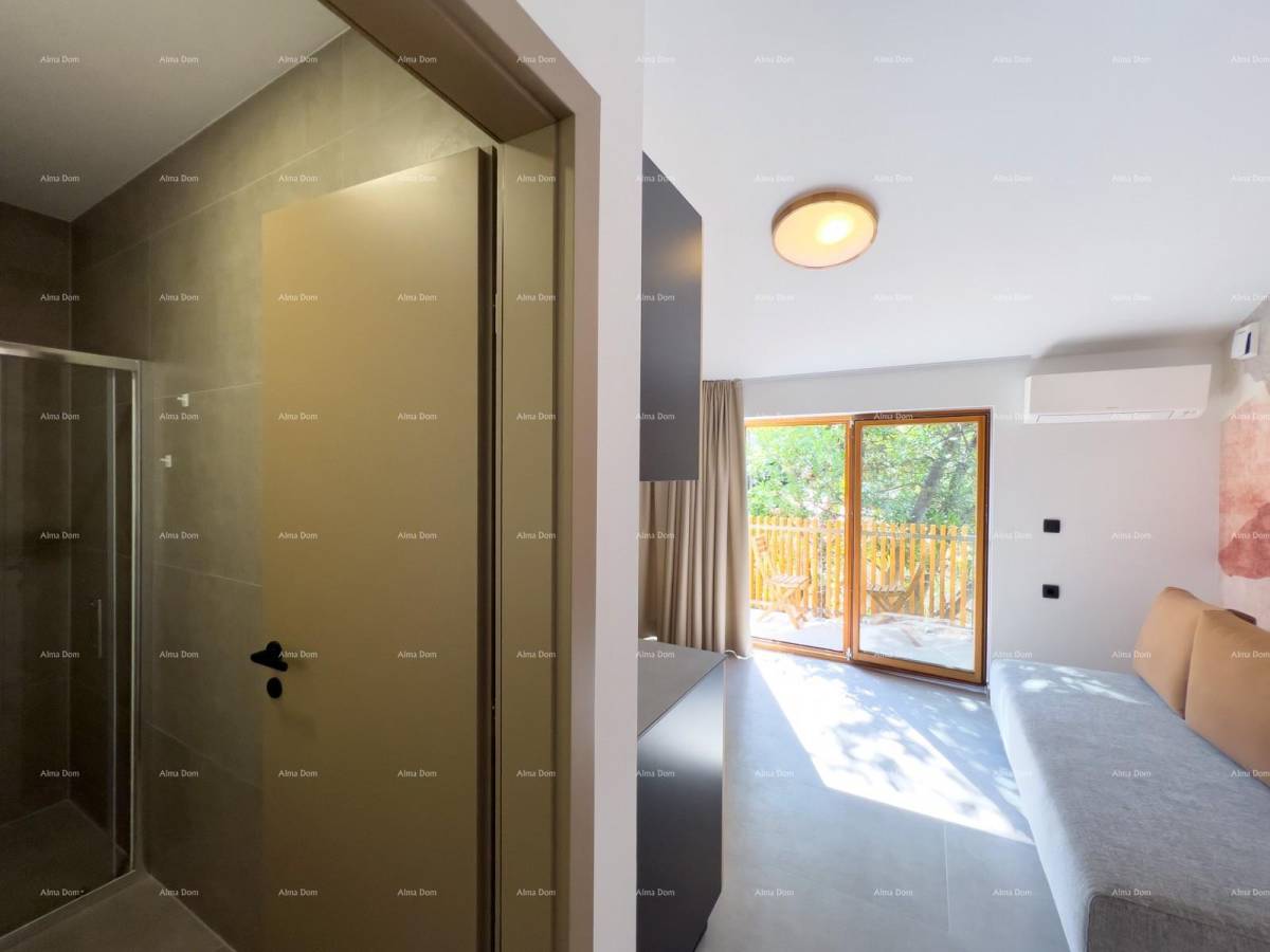 Manja kuća sastoji se od tri apartmana koji imaju po jednu spavaću sobu, kupatilo, kuhinju dnevni boravak i vlastitu terasu.