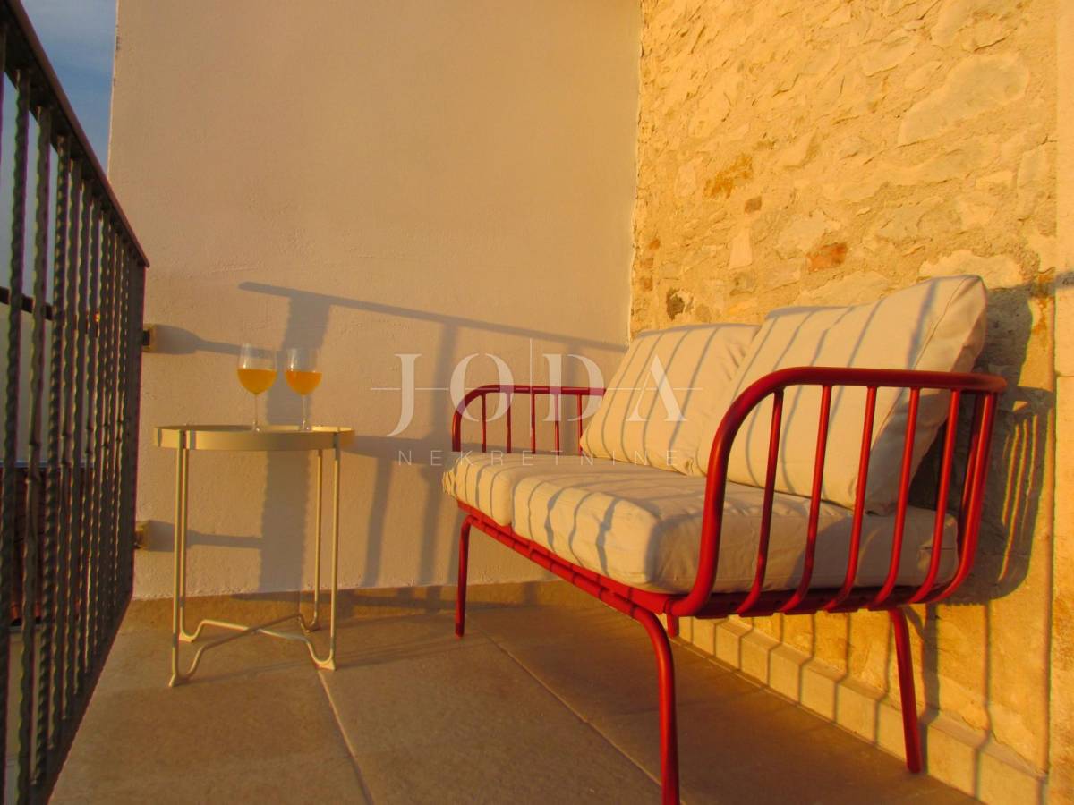 Stan se nalazi u tradicionalnoj Istarskoj kamenoj kući s romantičnim pogledom prema moru,divnim zalascima sunca i skrivenom terasom na krovu zgrade.Stan ima svoj privatni ulaz.Sastoji se od 2 spavaće sobe,2 kupaonice,potpuno opremljene kuhinje sa blagavaonom te dvije terase.