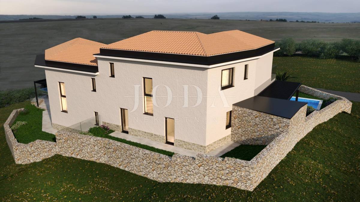 Prodaje se lijepa villa na atraktivnoj lokaciji blizu mora u mjestu Vrbnik. Površina vile je 187m2. Villa se gradi na parceli površine 412 m2 i sastoji se od dvije etaže. U prizemlju je komforni dnevni boravak i blagovaona, kuhinja, ulazni prostor sa stubištem, izba s praonom, tehnička soba, jedna spavaća soba i kupaona. Na katu su tri prostrane spavaće dobe, svaka s vlastitom kupaonicom, predprostor, natkriveni balkon i natkrivena terasa. Vrhunska gradnja i oprema. Na okućnici se nalazi bazen, spremište i dva parkirna mjesta.