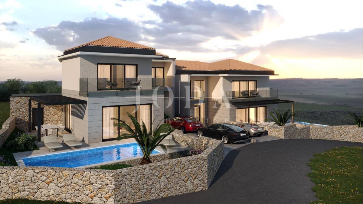 Vrbnik, otok Krk, predivna dvojna villa na top lokaciji s predivnim pogledom na more.