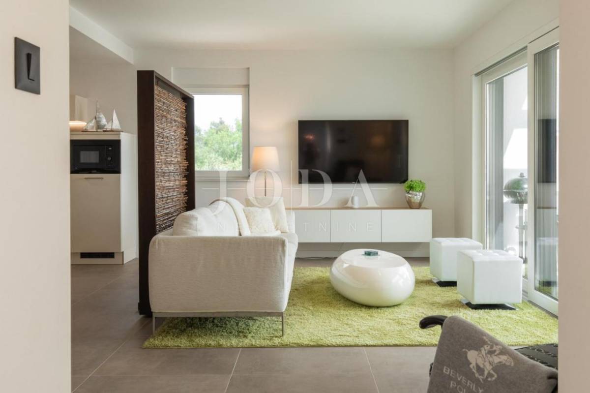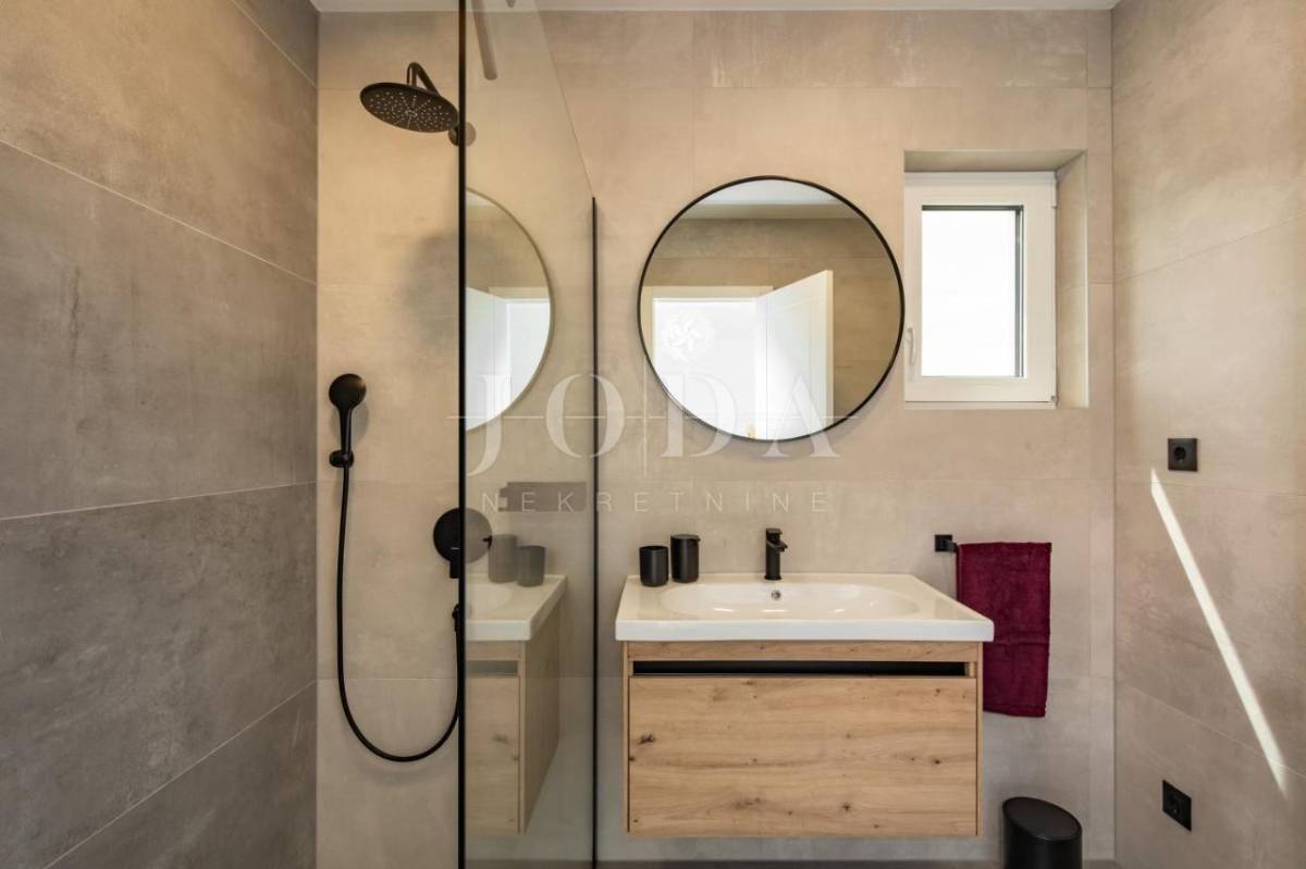 Penthouse se nalazi na zadnjem katu manje stambene zgrade, a sastoji se od hodnika, ostave, dvije kupaonice, dvije spavaće sobe, sobe koja trenutno služi kao dodatni dnevni boravak, ali se može prenamijeniti u dodatnu spavaću sobu i ima izlaz na balkon, te open space dnevnog boravka s blagovaonicom i kuhinjom gdje je izlaz na drugi balkon koji ima Jacuzzi. Grijanje je putem klima uređaja. Prodaje se kompletno opremljen i namješten. Na raspolaganju su dva parkirna mjesta.