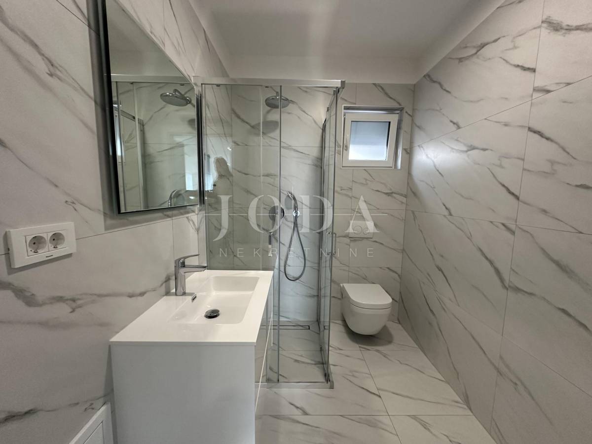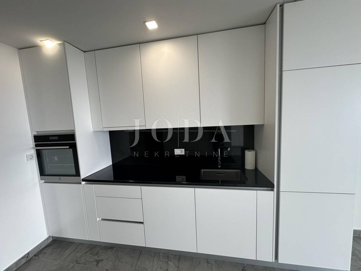 Stan je u potppunosti klimatiziran te opremljen podnim grijanjem. Sa stanom dolazi i kompleto namještena nova kuhinja sa kućanskim aparatima.