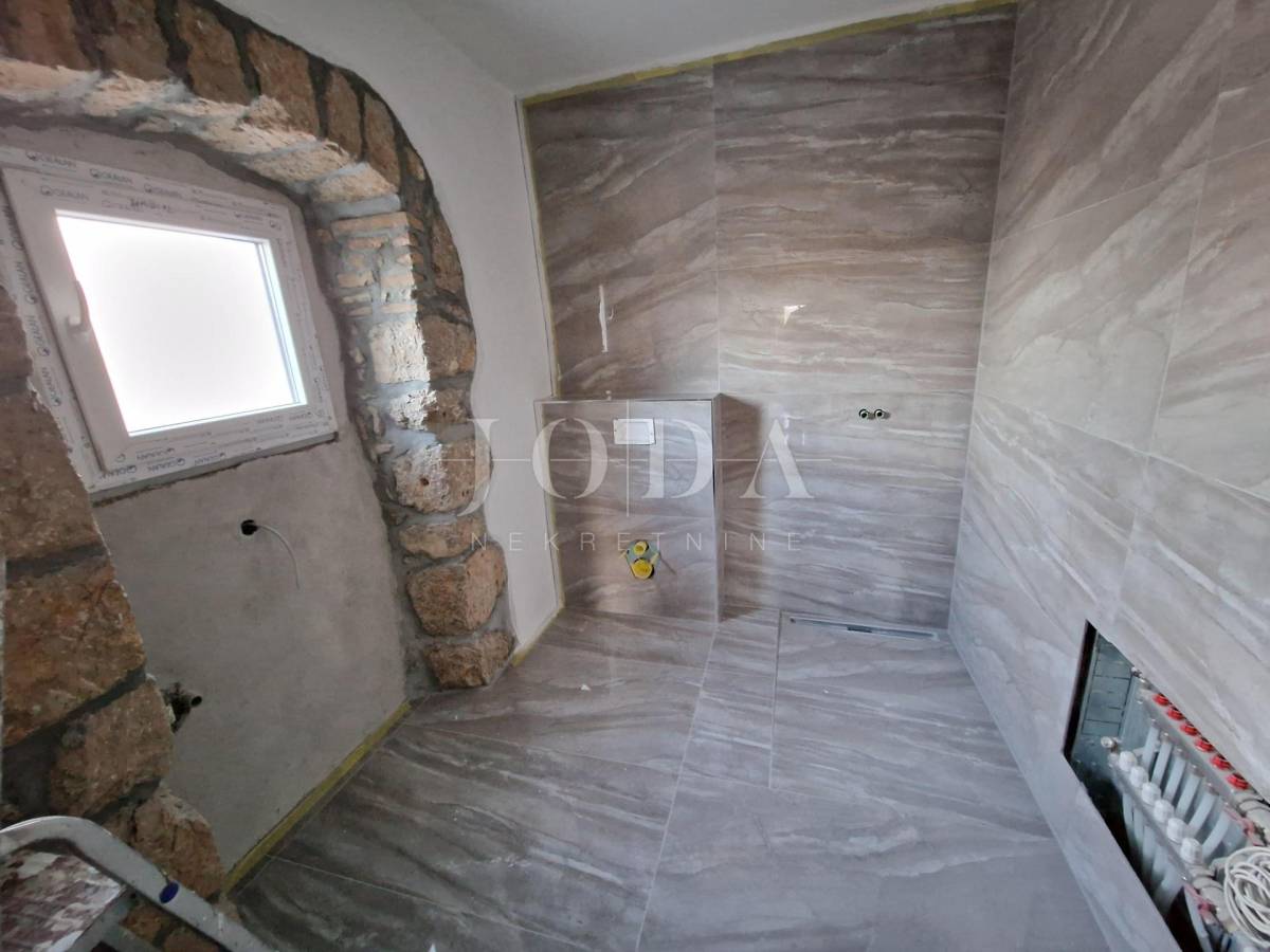 Nekretnina je u procesu adaptacije. Stambene je površine 134m2 i sastoji se od prizemlja i kata. U prizemlju se nalazi open space dnevni boravak, kuhinja i blagavaonica, kupaonica te konoba. Unutarnje stepenice vode na kat gdje se nalaze tri spavaće sobe i tri kupaonice. U potpunosti je klimatizirana te ima podno grijanje. Nekretnini pripada lijepo uređena okućnica gdje se nalaze bazen sa sunčalište i prostor za druženje s roštiljem. Pripadaju ju joj i dva parkirna mjesta. Kuća se nalazi na prekrasnoj mirnoj lokaciji okruženoj obiteljskim kućama, cca 4km od mora i plaža. Lokacija pruža mir za pravi odmor!