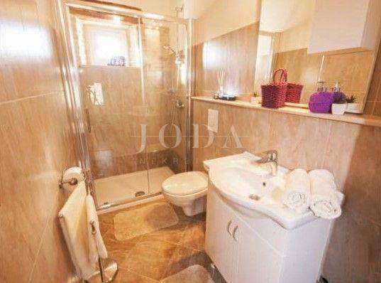 Kuća je dvojna od toga je 120m2 uređeno za najam,u prizemlju se nalazi dnevni boravak,blagovaona i kuhinja te izlaz u