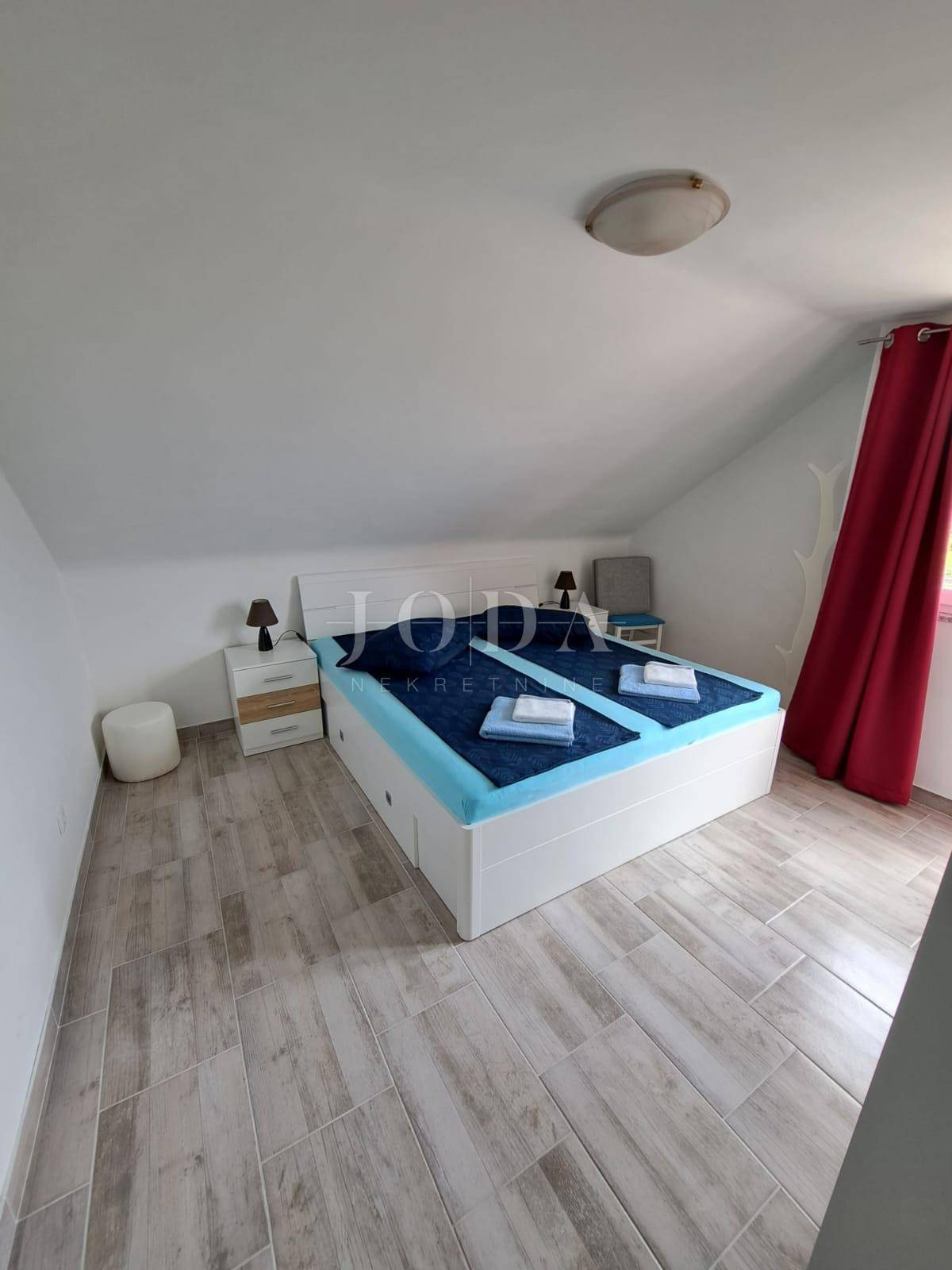 Kuća se sastoji od dva jednosobna stana u prizemlju te jednog dvosobnog stana na prvom katu i jednog dvosobnog stana na drugom katu. Jedan od jednosobnih stanova je u roh bau fazi i potrebna mu je adaptacija. Dvosobni stanovi su kategorizirani s 4* i koriste se u funkciji turizma. Kuća ima sedam terasa, četiri balkona, prekrasnu uređenu okućnicu s čak dva vanjska roštilja i prekasnim pogledom na Senj. Odlična prilika za ovakvu nekretninu koja je rijetkost na tržištu.