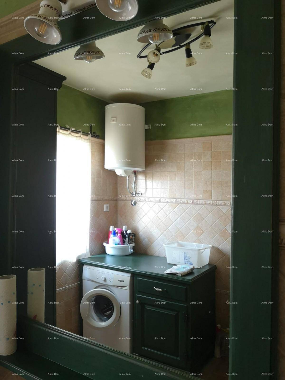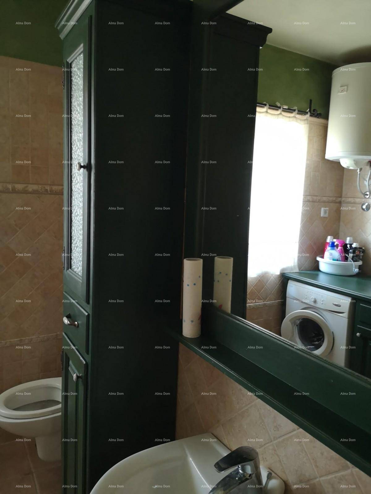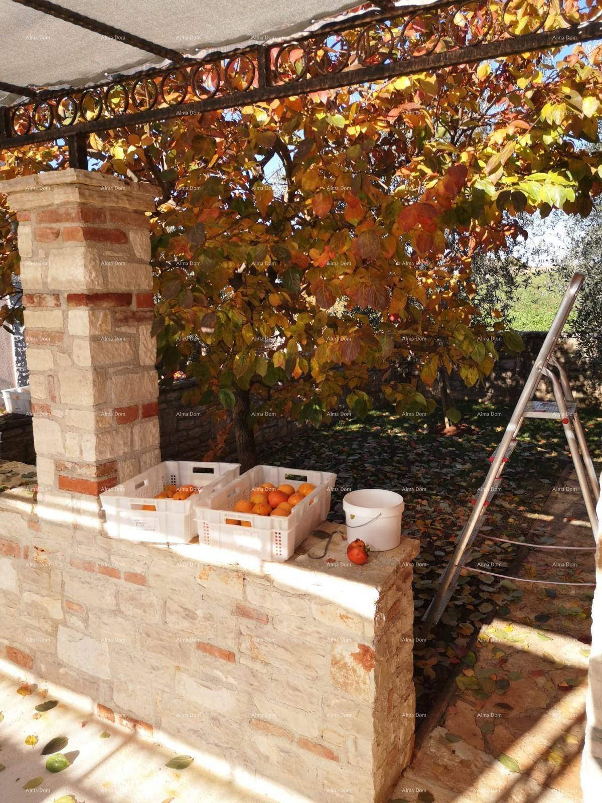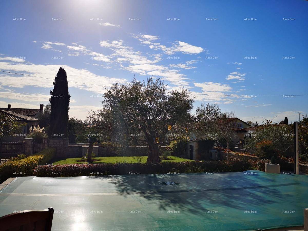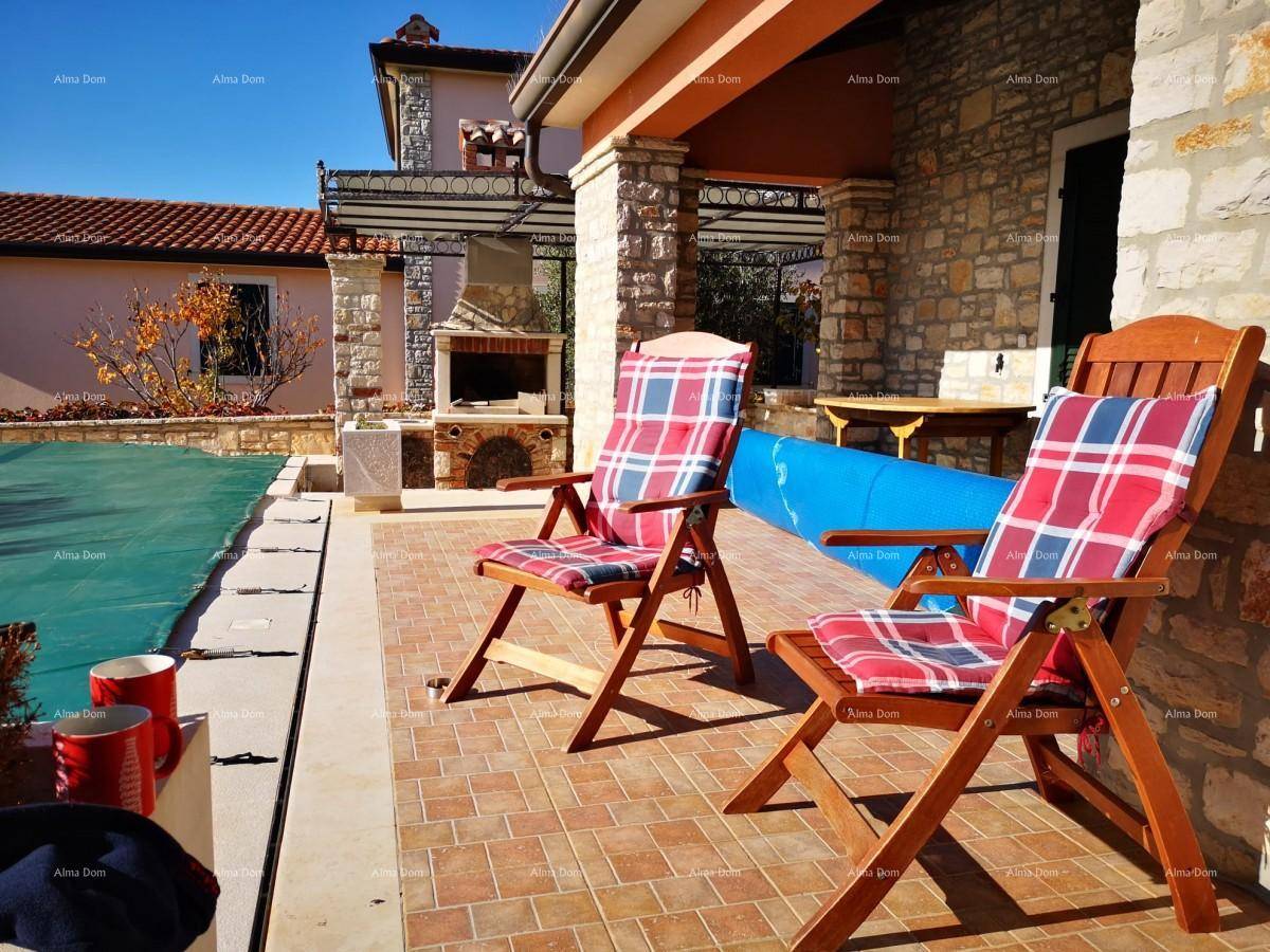 Prekrasna kuća s velikim bazenom od 35 m2. Kvadratura kuće je 168 m2, okućnica je 750 m2. Ima 2 parking mjesta. Kuća se sastoji od dnevnog boravka, kuhinje s blagovaonom, 4 spavaće sobe,3 kupaone. Ima kamin. Grijanje je na klimu i na peć. Udaljenost od mora 4,5 km, od Poreča i Novigrada je 10 km.