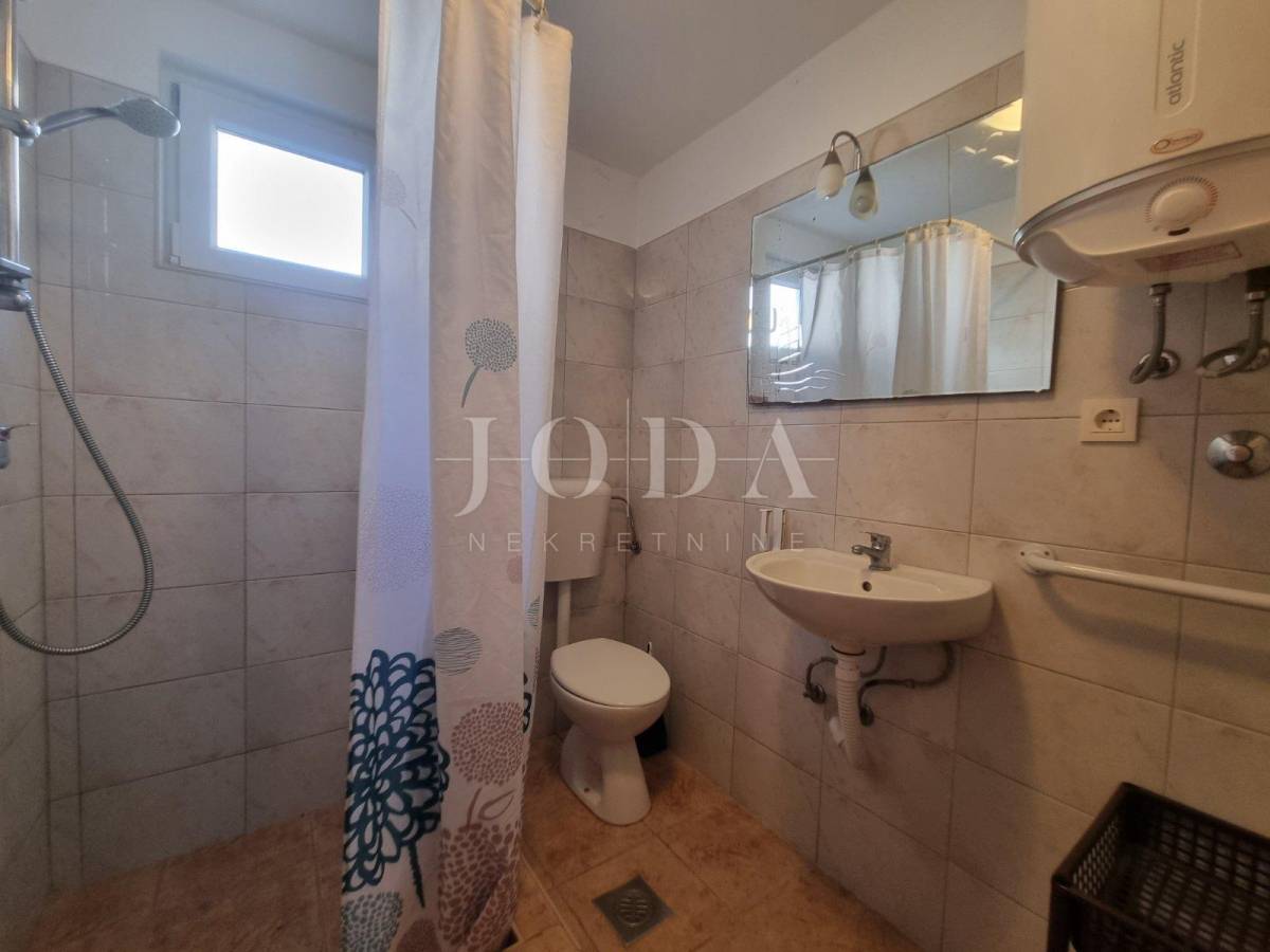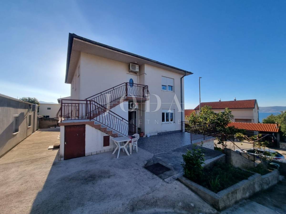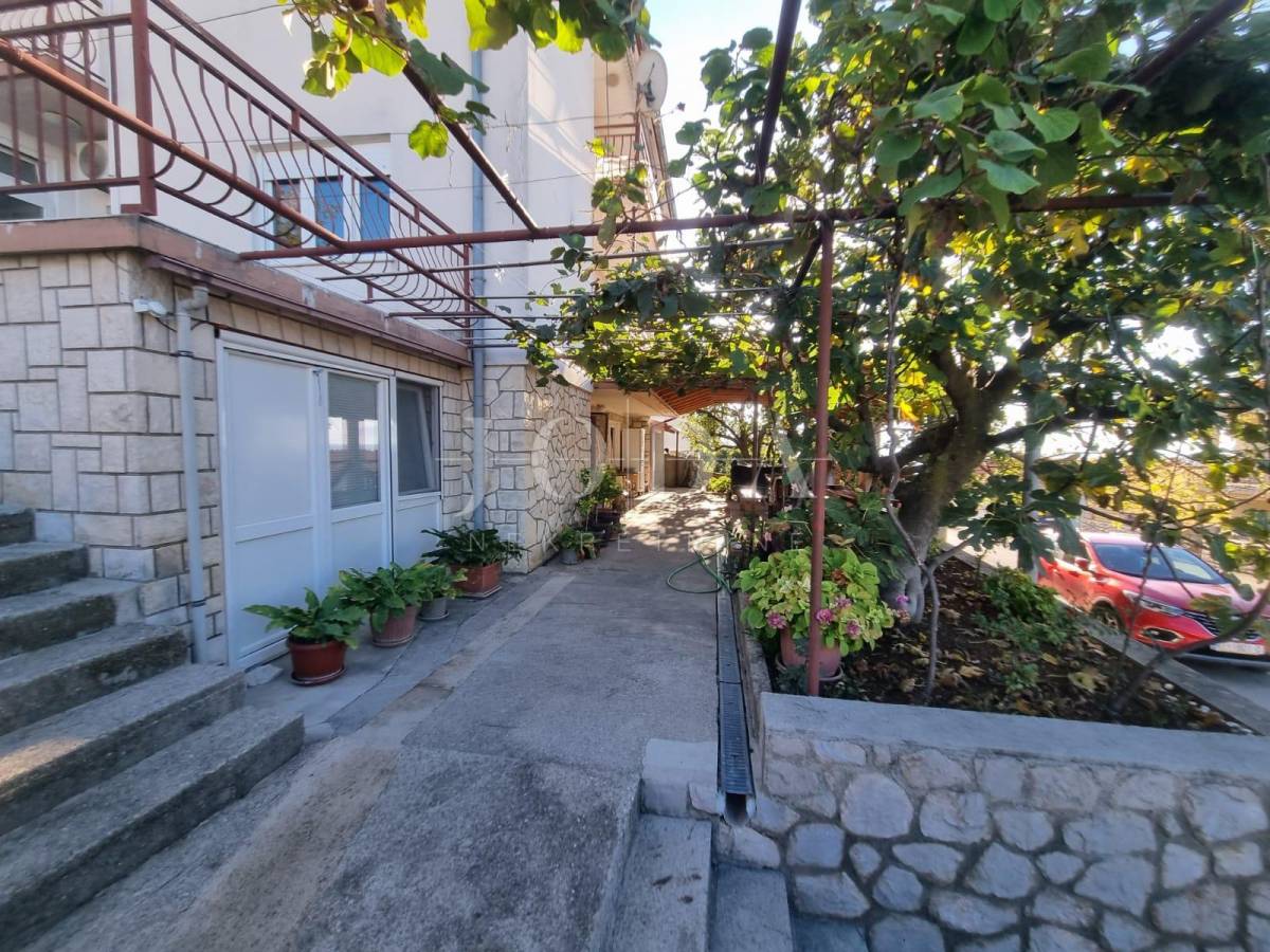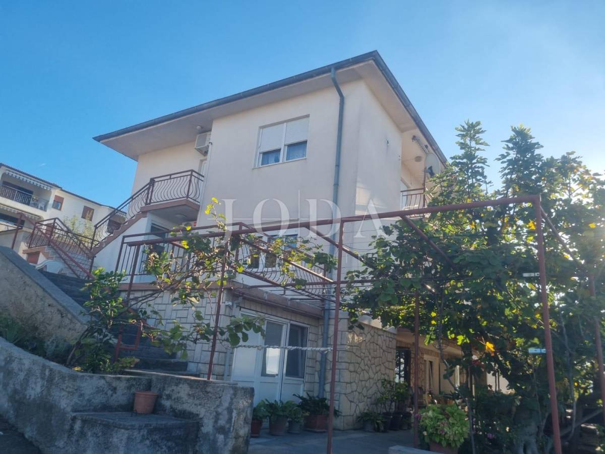 Prodajemo samostojeću kuću na parceli od 806m2. U prizemlju kuće se nalazi stan koji se sastoji od dnevnog boravka sa kuhinjom, dvije sobe obje sa vlastitom kupaonom te velike terase. Na katu se nalazi stan sa tri spavaće sobe, dvije kupaone, kuhinjom i dnevnim boravkom koji ima izlaz na terasu odnosono balkon. Na drugoj etaži je identičan stan sa tri spavaće sobe, dvije kupaone, kuhinjom i dnevnim boravkom te balkonom sa kojeg se pruža prekrasni pogled na more. Kuća je potpunosti namještena i klimatizirana, a za dodatno grijanje koristi se centralano grijanje na lož ulje. Unutar okućnice nalazi se objekt sa dva apartmana ukupne površine 50m2. Prostrana okoućnica omogućava parking za više automobila te mogućnost gradnje bazena i dodatnih sadržaja. Odlična lokacija nekretnine zbog bilizine svih potrebnih sadržaja
