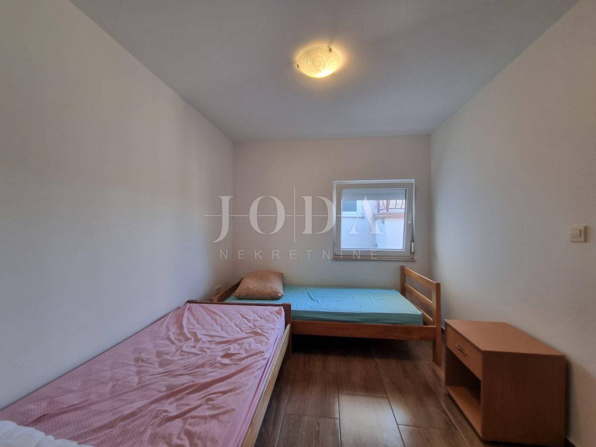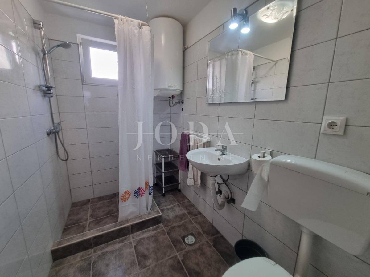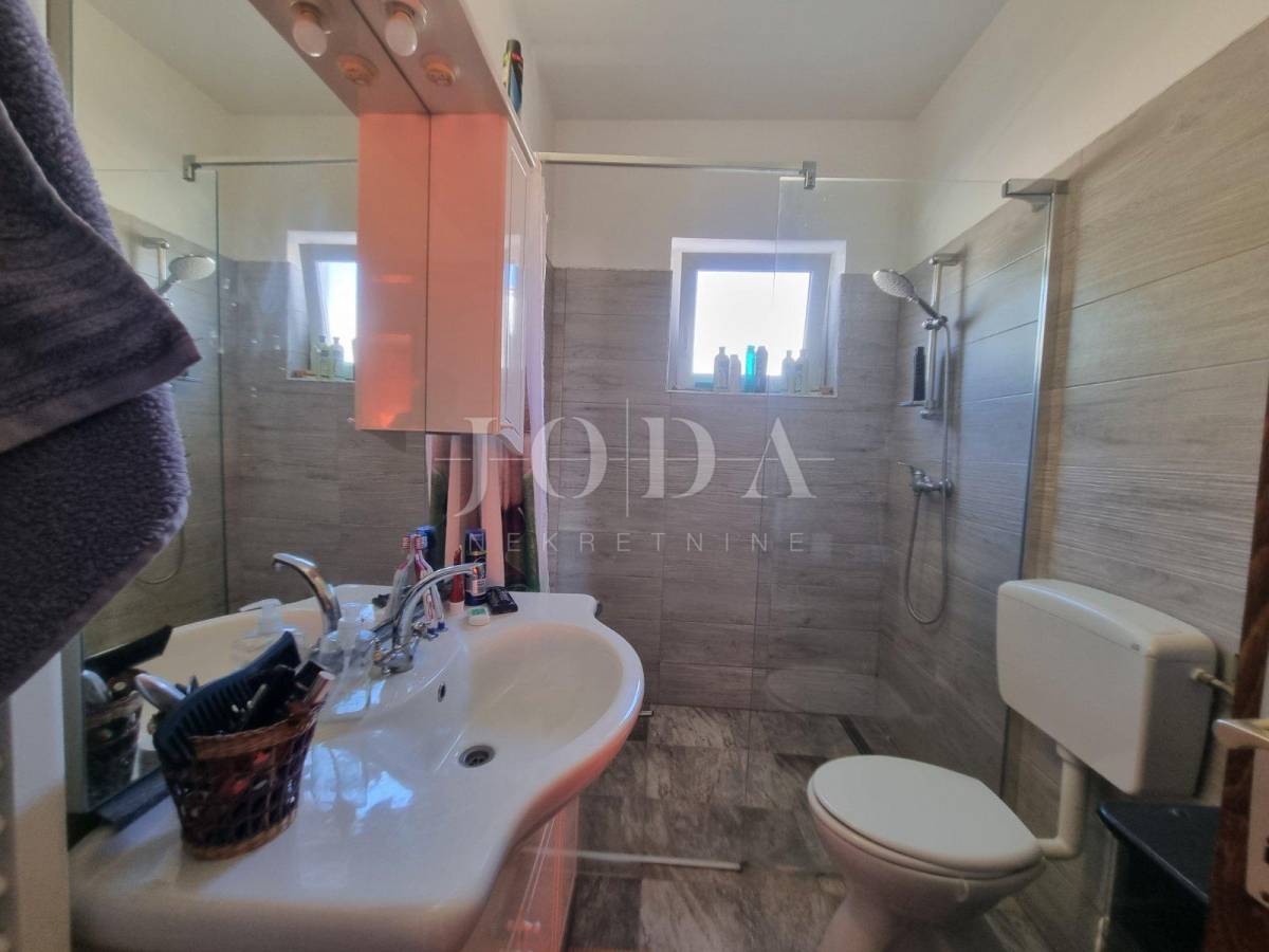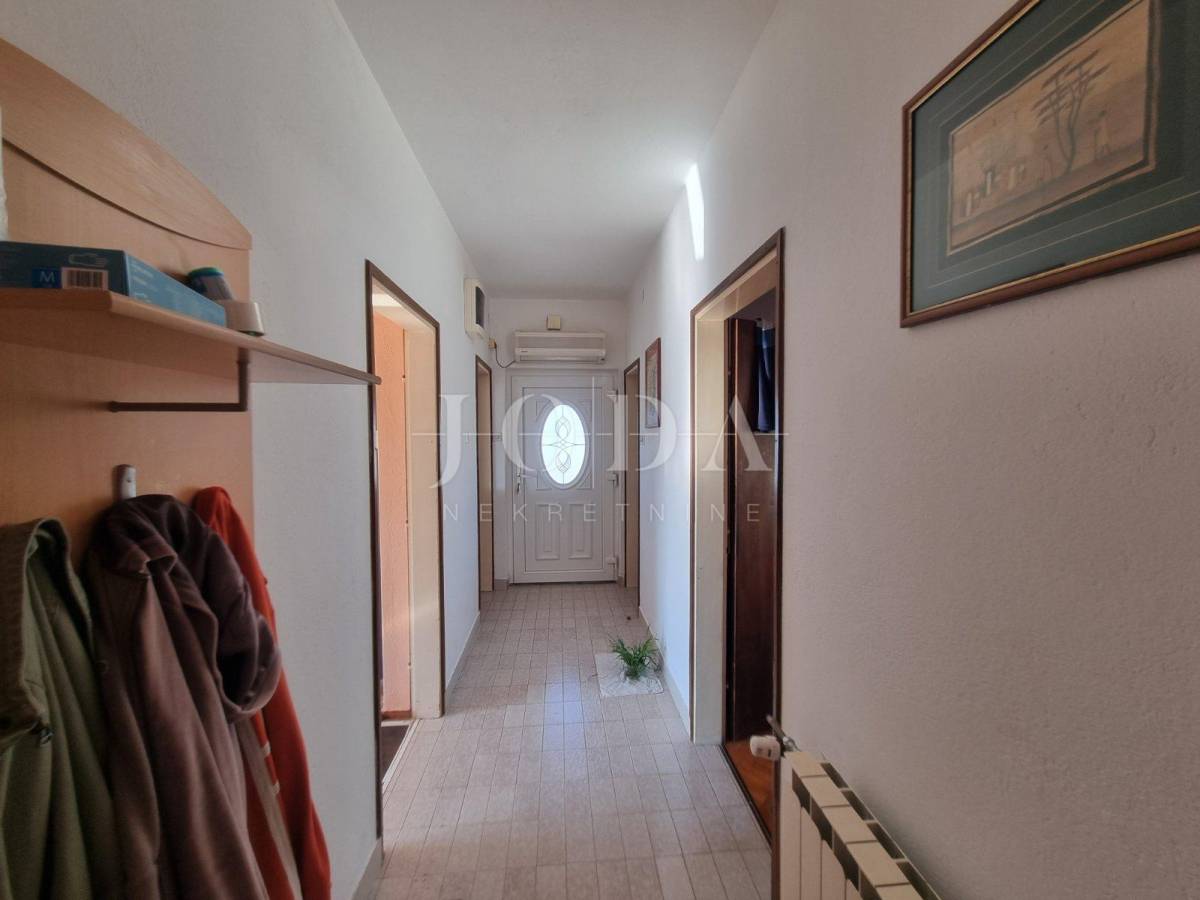 Prodajemo samostojeću kuću na parceli od 806m2. U prizemlju kuće se nalazi stan koji se sastoji od dnevnog boravka sa kuhinjom, dvije sobe obje sa vlastitom kupaonom te velike terase. Na katu se nalazi stan sa tri spavaće sobe, dvije kupaone, kuhinjom i dnevnim boravkom koji ima izlaz na terasu odnosono balkon. Na drugoj etaži je identičan stan sa tri spavaće sobe, dvije kupaone, kuhinjom i dnevnim boravkom te balkonom sa kojeg se pruža prekrasni pogled na more. Kuća je potpunosti namještena i klimatizirana, a za dodatno grijanje koristi se centralano grijanje na lož ulje. Unutar okućnice nalazi se objekt sa dva apartmana ukupne površine 50m2. Prostrana okoućnica omogućava parking za više automobila te mogućnost gradnje bazena i dodatnih sadržaja. Odlična lokacija nekretnine zbog bilizine svih potrebnih sadržaja