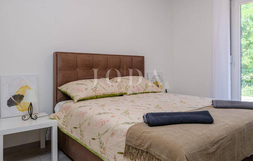 Okružena zelenilom u mirnom naselju te udaljena od mora 3km pruža sve pogodnosti budućem vlasniku.