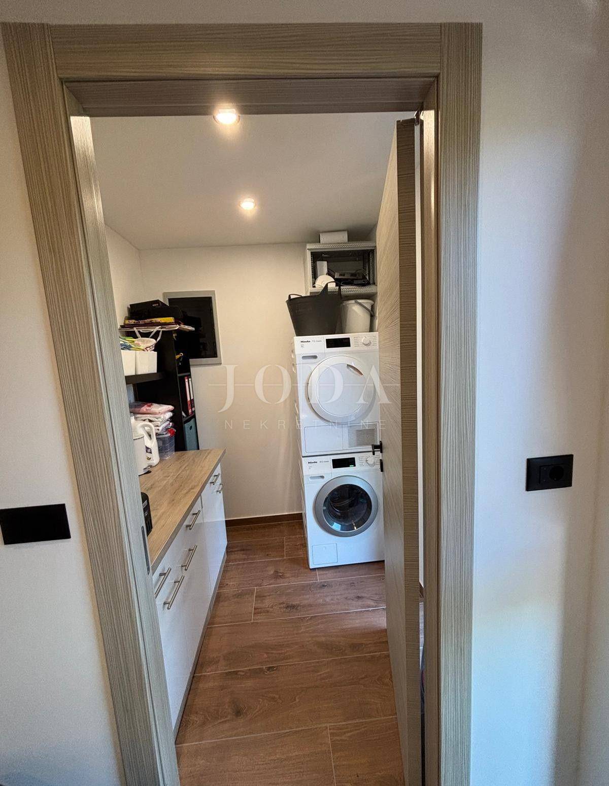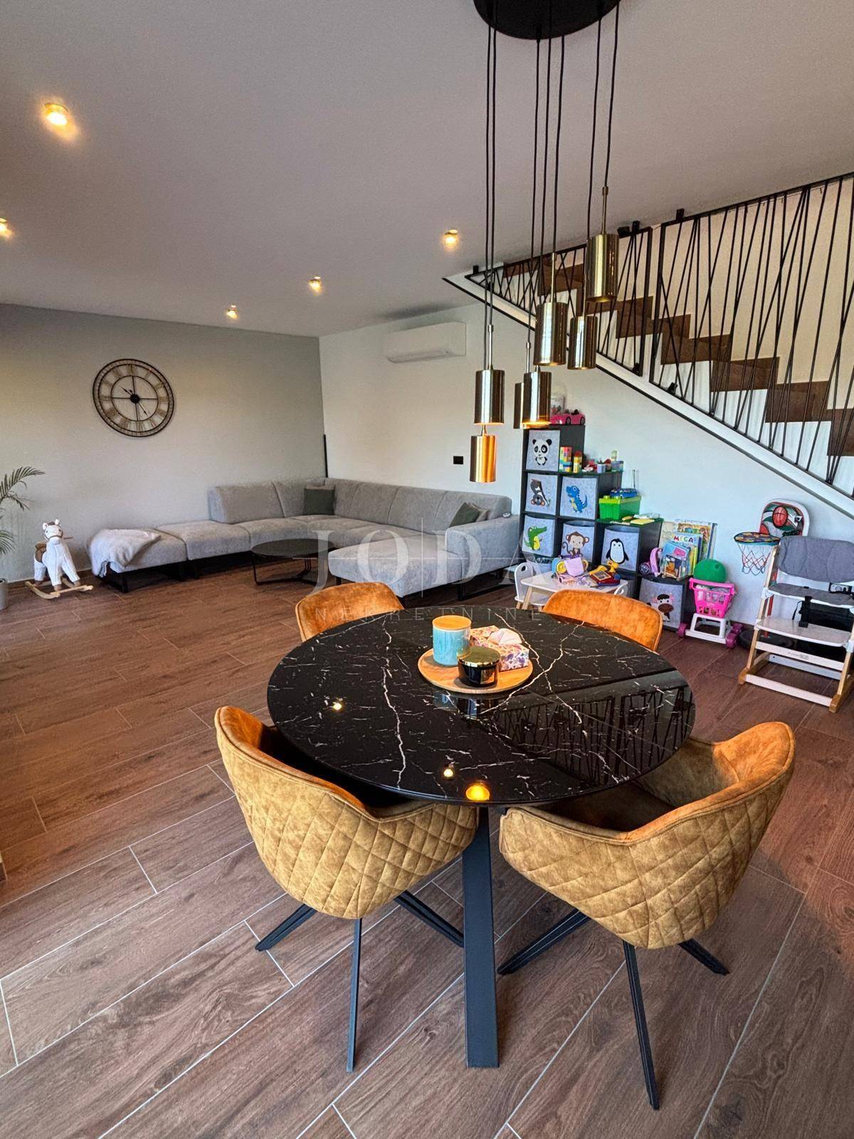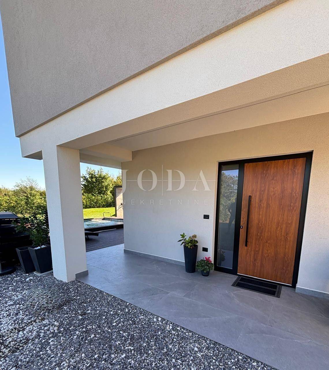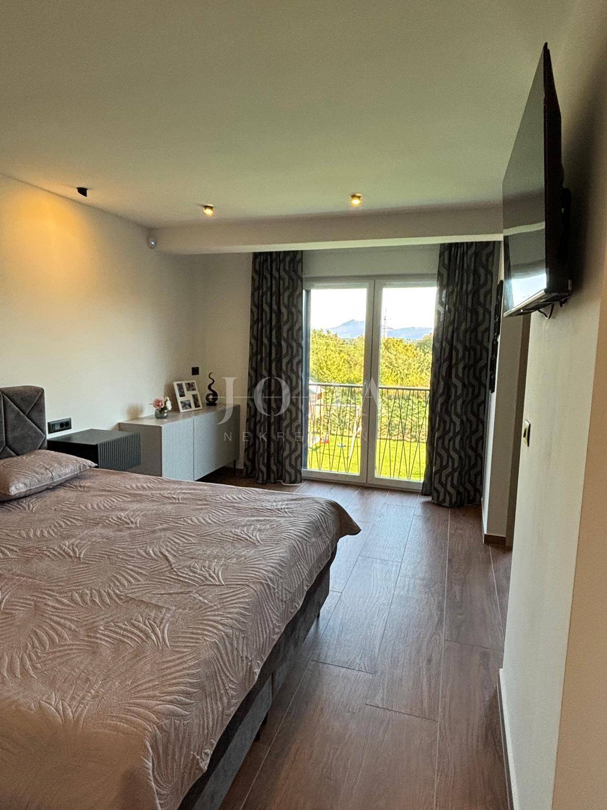 Ispred vile prostran parking te dizajnerski osvijetljen ulaz vodi nas u open space dnevni boravak,kuhinju i blaovaonu.