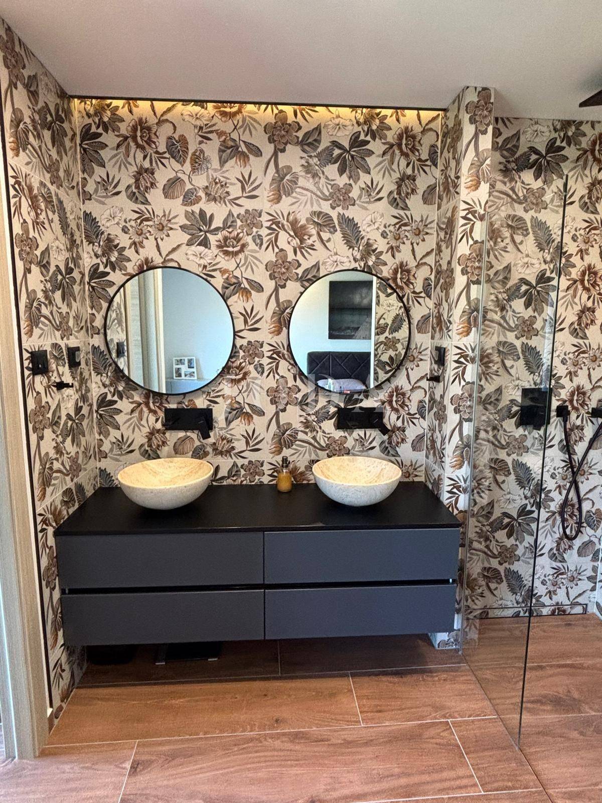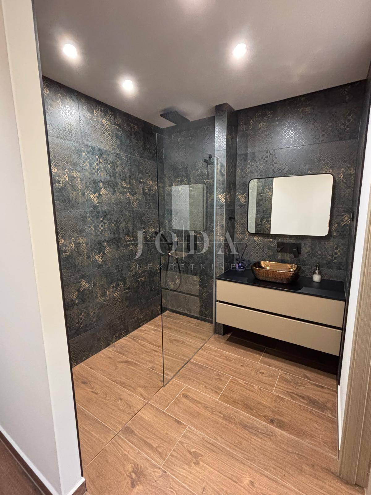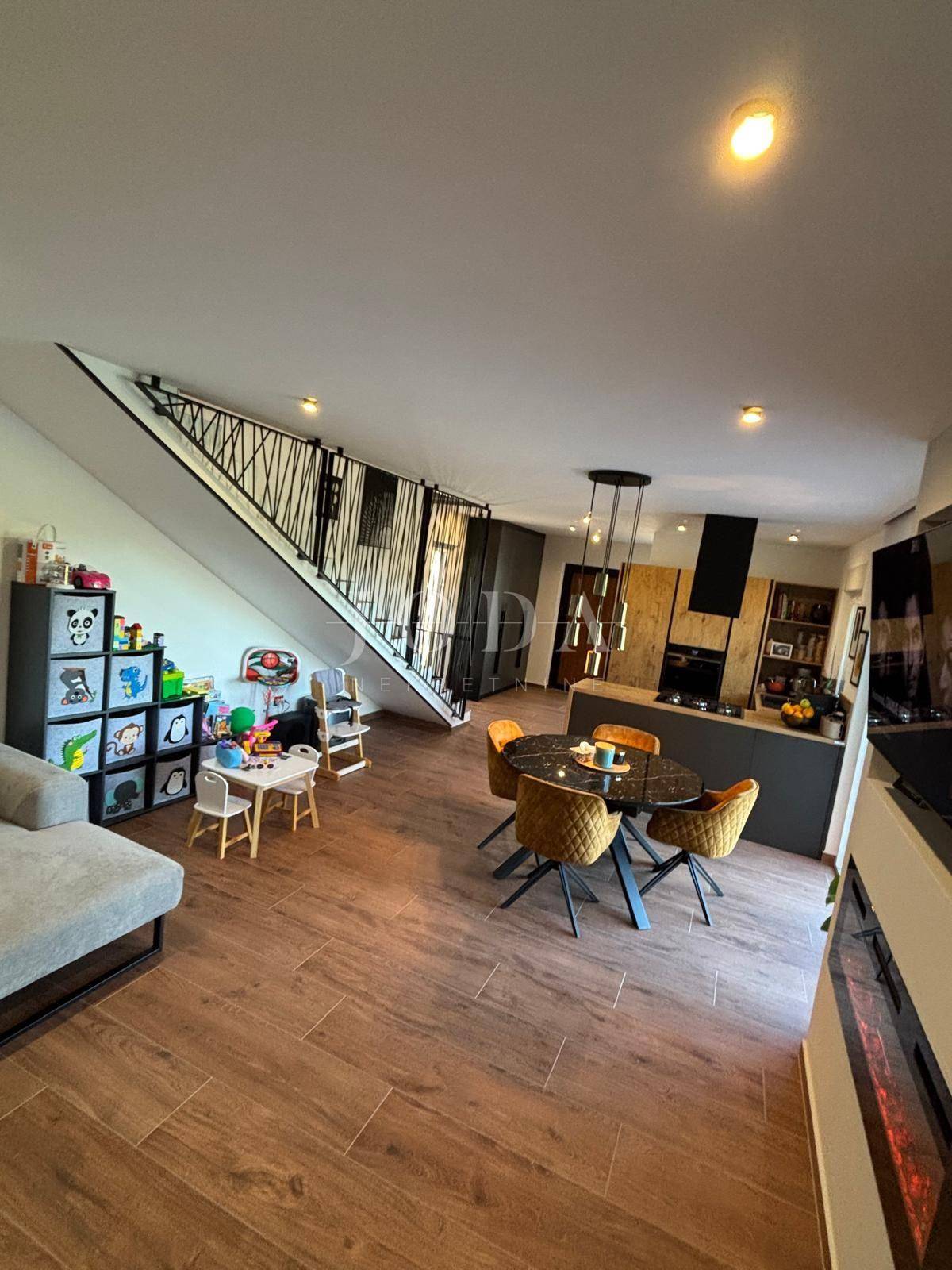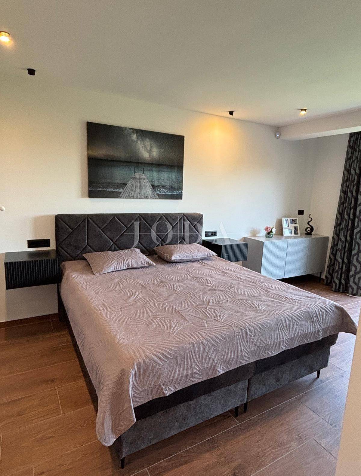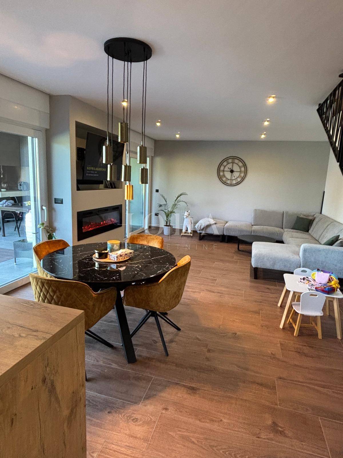 Ispred vile prostran parking te dizajnerski osvijetljen ulaz vodi nas u open space dnevni boravak,kuhinju i blaovaonu.