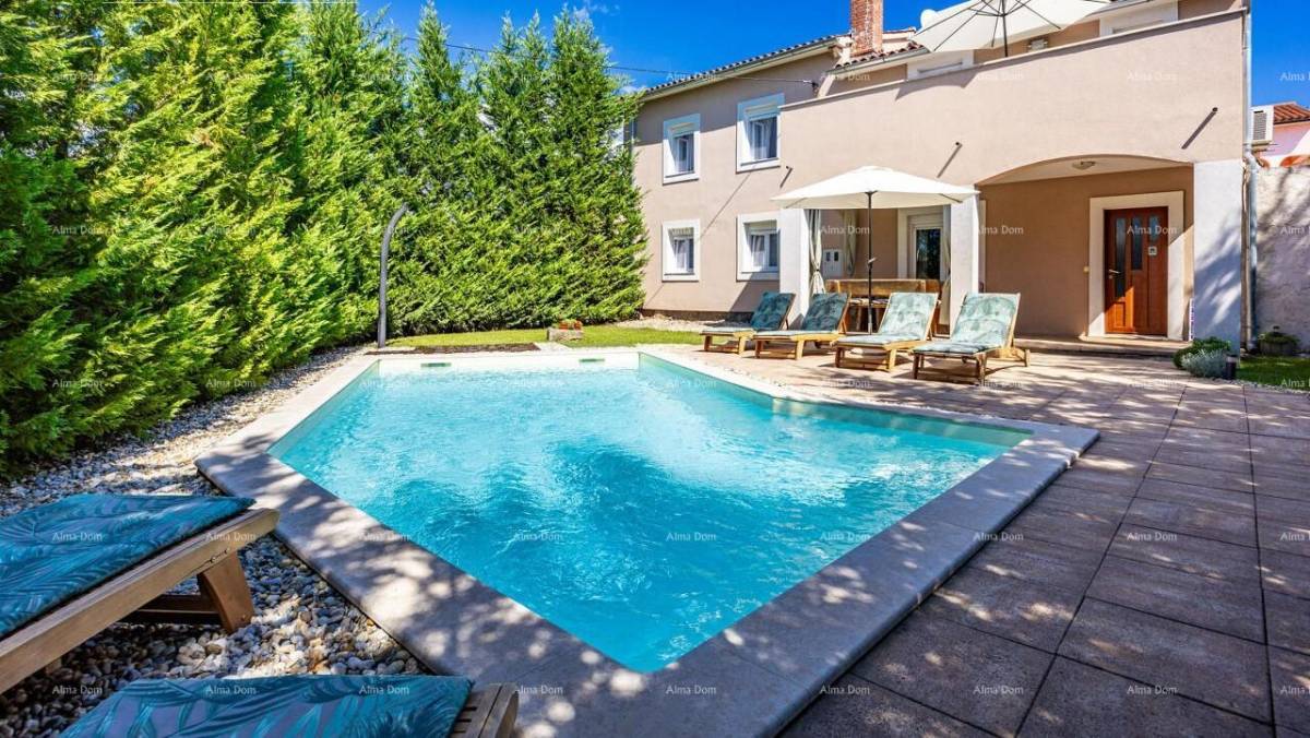 Posebnu vrijednost nekretnini daje privatni bazen, nedavno obnovljen (nova ELBE Elite folija, nova strojarnica i ugrađeni elementi). Uređena i ograđena okućnica zasađena je zelenilom koje osigurava potpunu privatnost. U dvorištu se nalazi roštilj te vanjska blagovaonica – idealno mjesto za uživanje u toplim istarskim večerima.