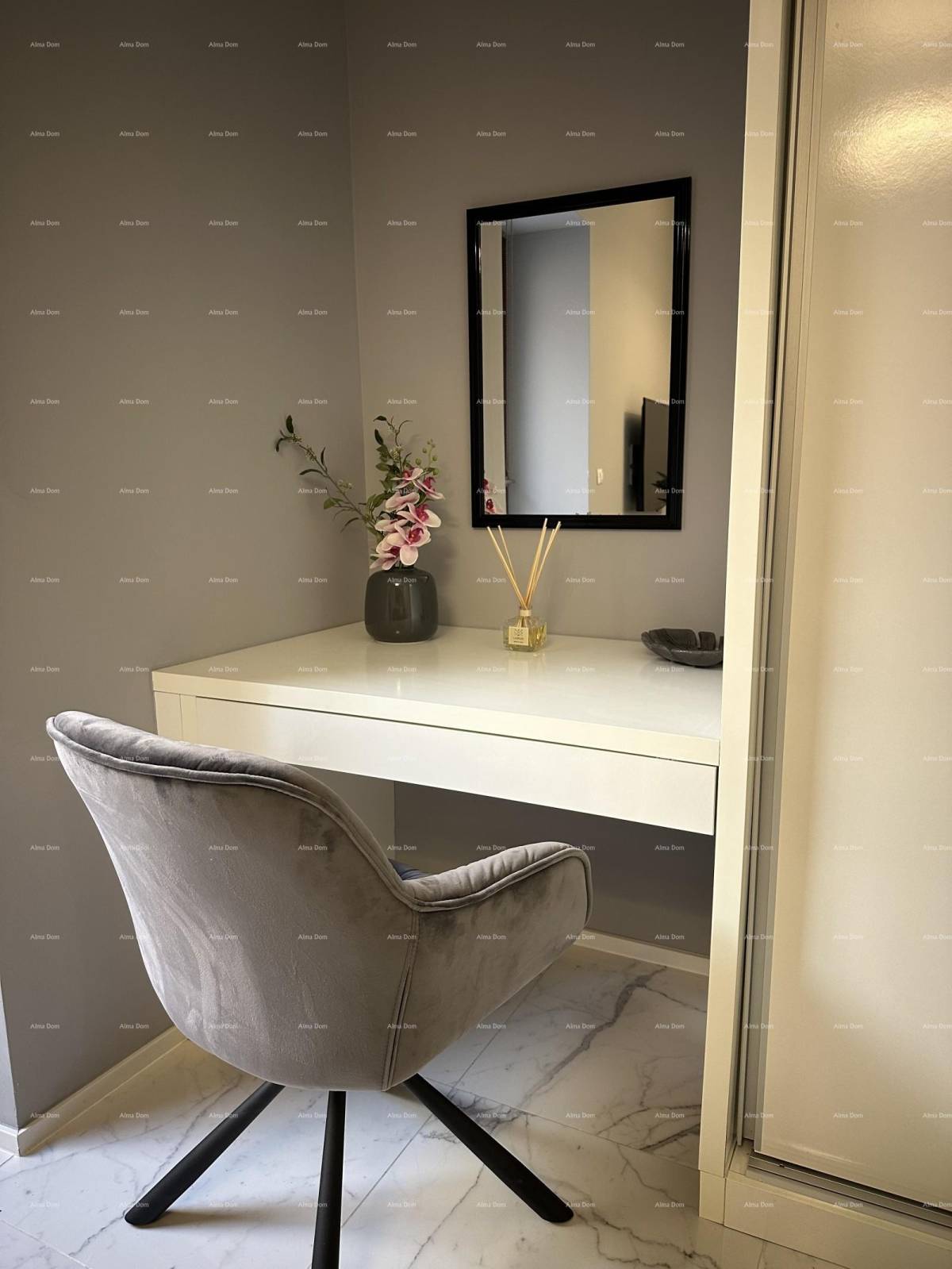 Stan u prizemlju uključuje predprostor, garderobu, dnevni prostor s kuhinjom i blagavaonom, 2 spavaće sobe, 2 kupaone, vešeraj i dvorište s natkrivenom terasom i ljetnom kuhinjom.