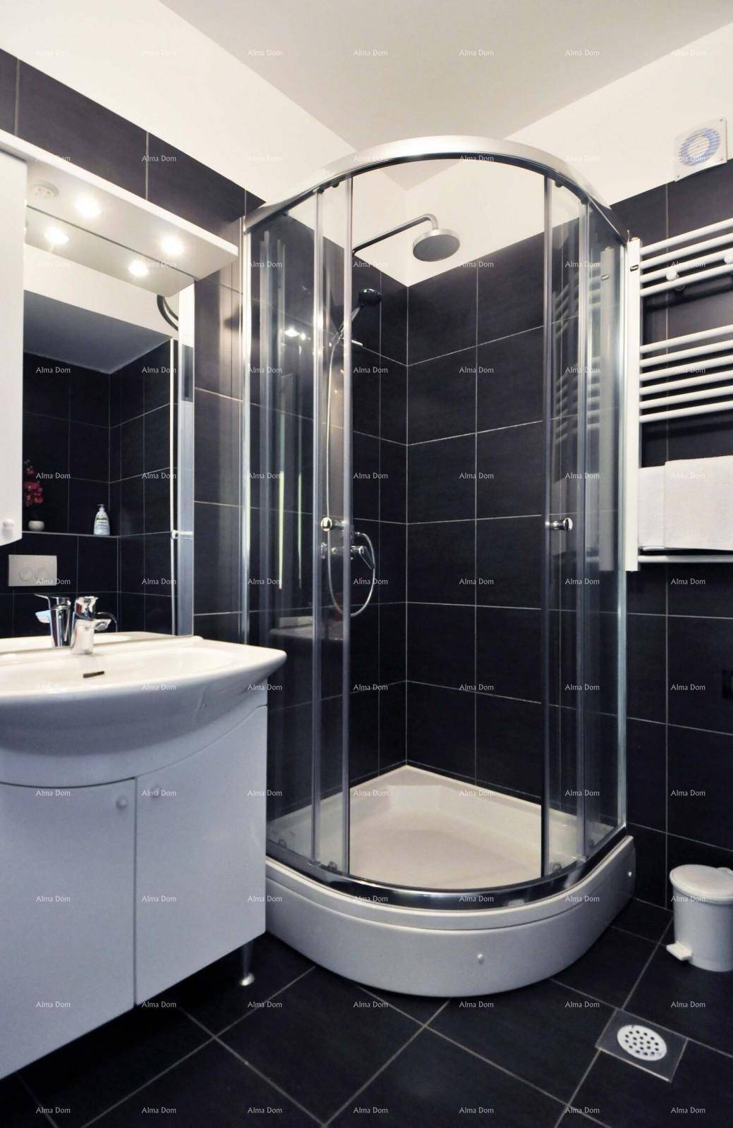 Svaki apartman ima 45 m2 te se sastoji od jedne spavaće sobe, kupaonice, kuhinje s blagavaonicom te dnevnim boravkom.