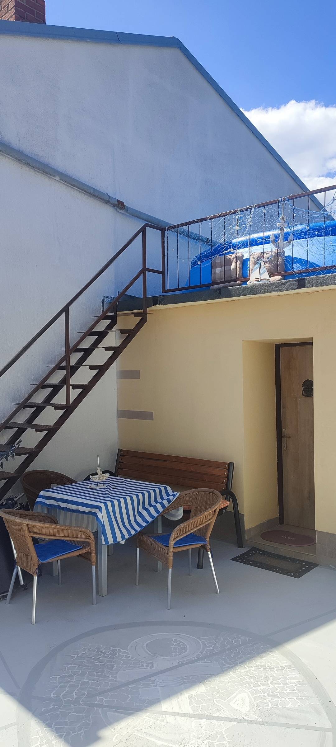 Prodaje se kuća sa apartmanom u dvorištu.Kuća ima 90 m2 i oko 20 m2 apartman.Dvorište je ograđeno,ima roštilj i terasu.Na donjoj etaži su dnevni boravak sa kaminom,kuhinja i blagaona,kupaona i ostava.Na gornjoj etaži su dvije spavaće sobe sa pogledom na more i jednim balkonom.Iza kuće je garaža,parkirano mjesto i vrt sa smokvom,marelicom,trešnjama,s povrćem