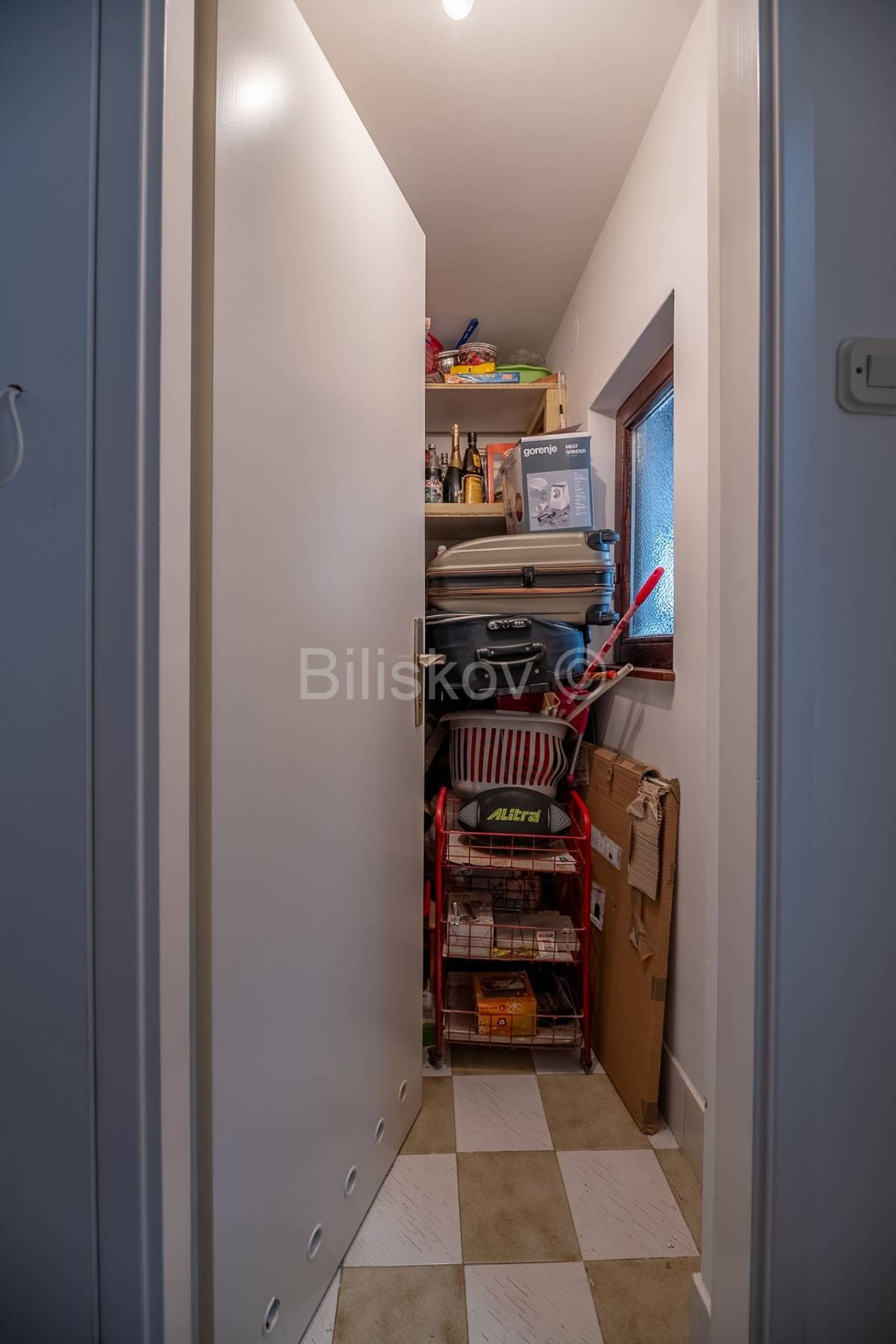 Na zemljištu se nalazi velika popločana terasa od 75, 90 m2 i pomoćna zgrada od 40 m2 gdje se nalazi sušiona i spremište alata.