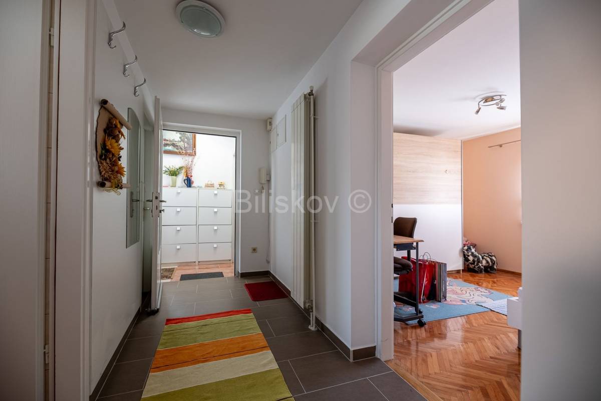 Stan u prizemlju se sastoji od ulaznog prostora, dnevnog boravka, kuhinje s blagovaonom, dvije sobe, ostave i kupaonice. Ukupno 71, 16 m2.