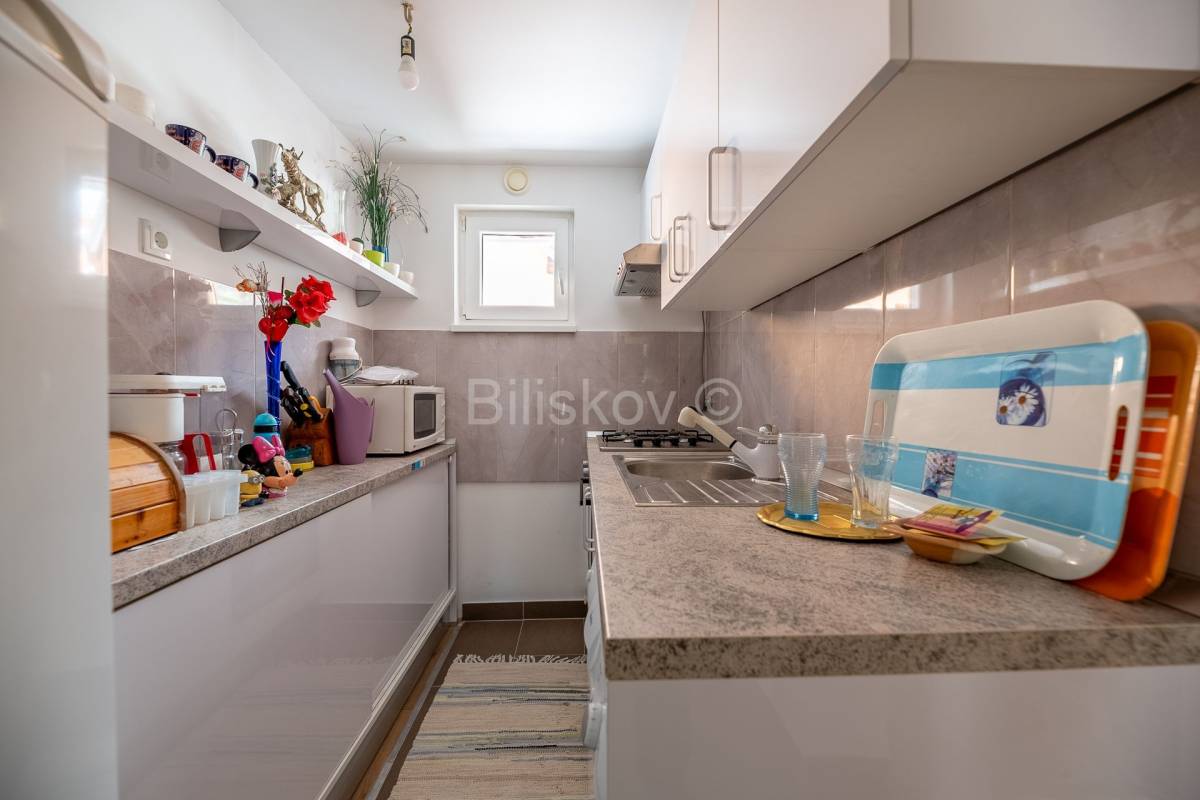 Stan u prizemlju se sastoji od kuhinje, sobe, wc-a,, ostave, i natkrivene terase. Ukupno 31, 71 m2.