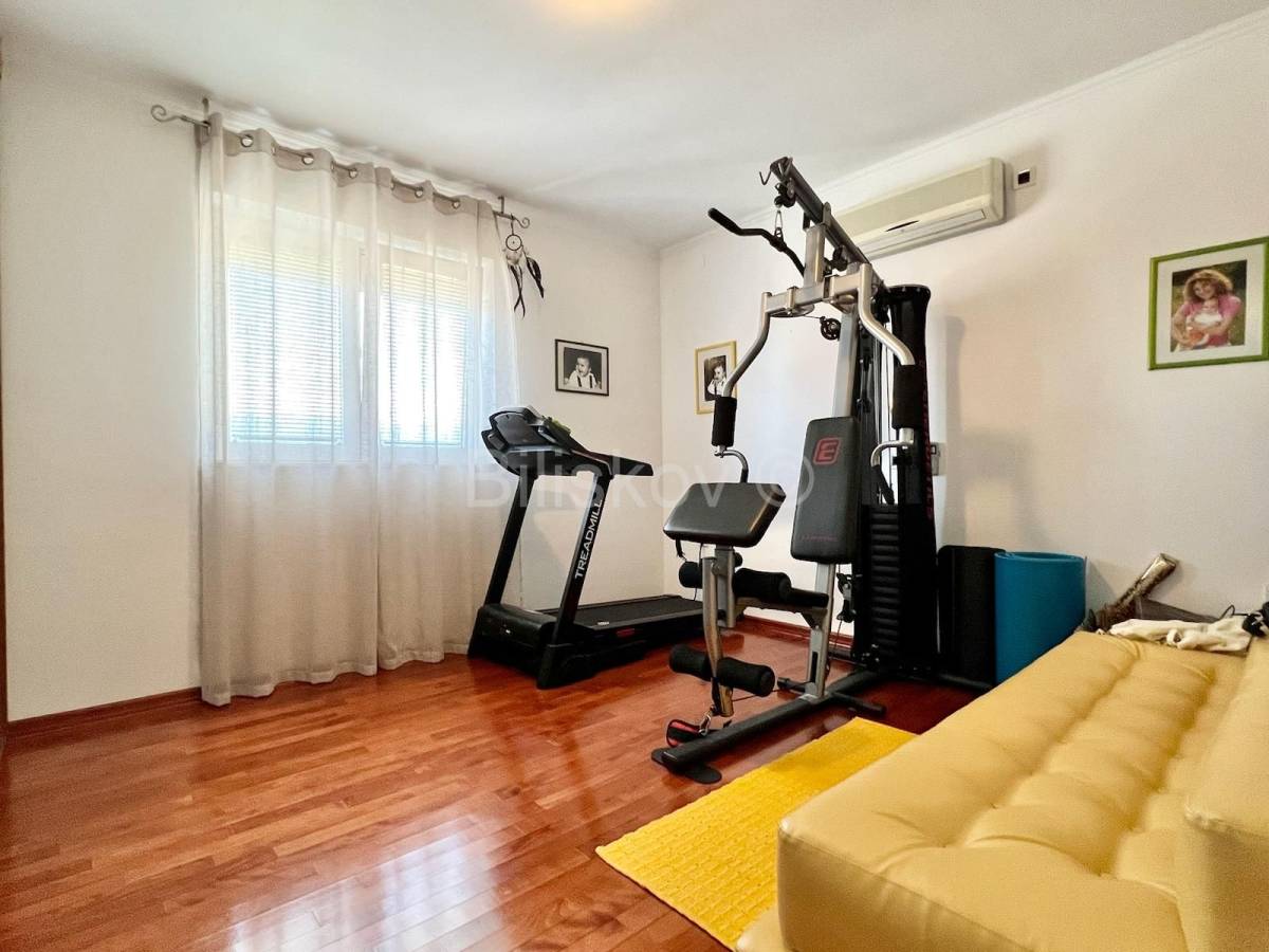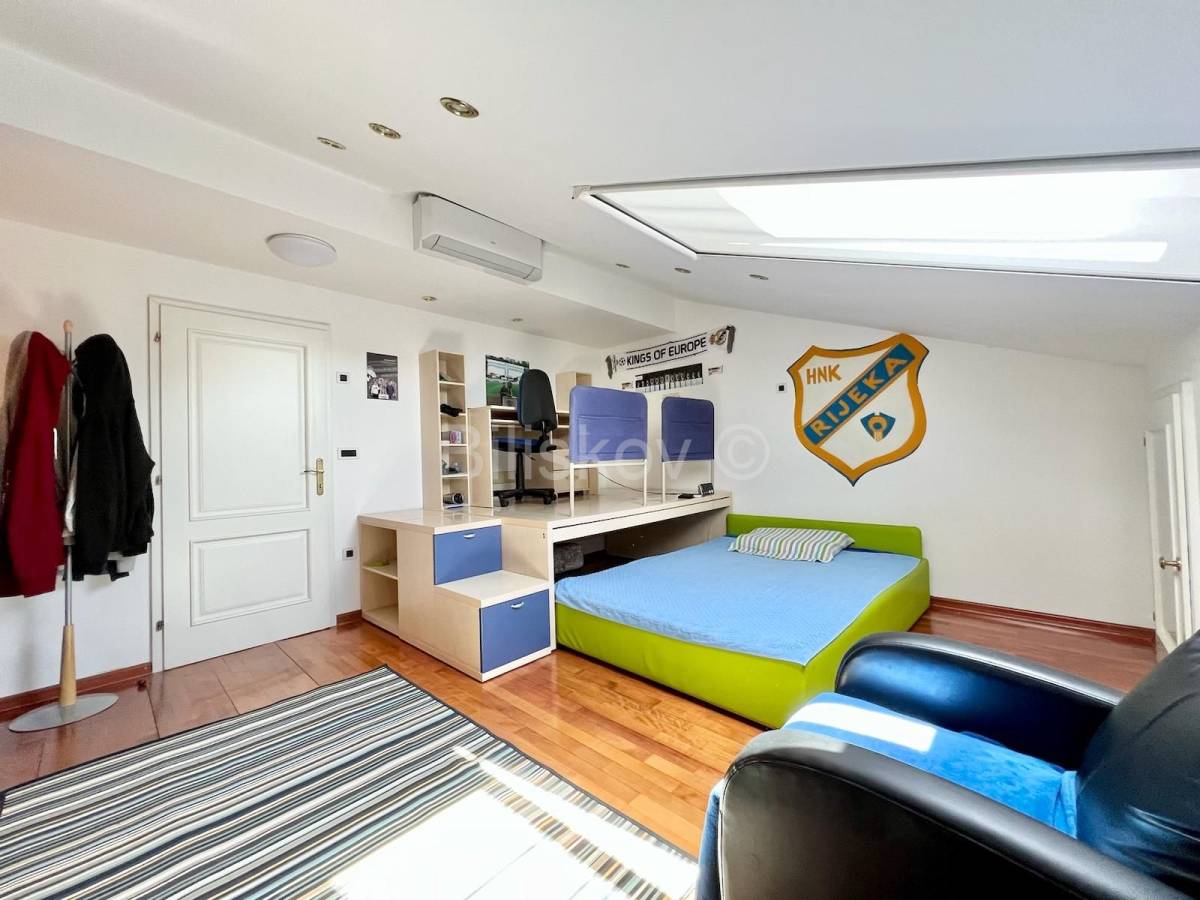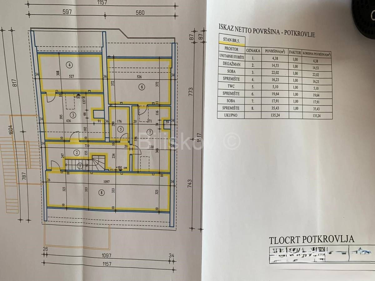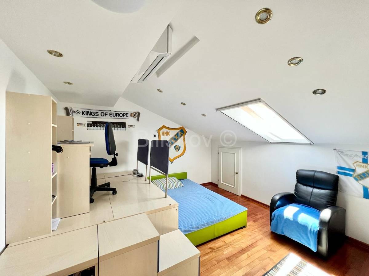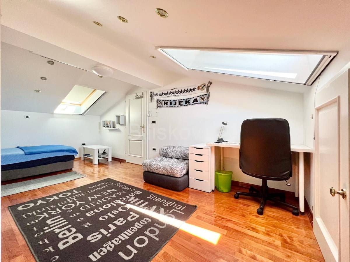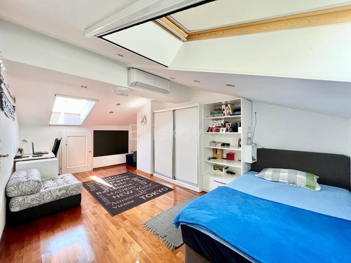 Prostrani dvoetažni peterosoban stan površine 296,39 m2 smjestio se na 2. katu i potkrovlju zgrade sagrađene 2000. godine.