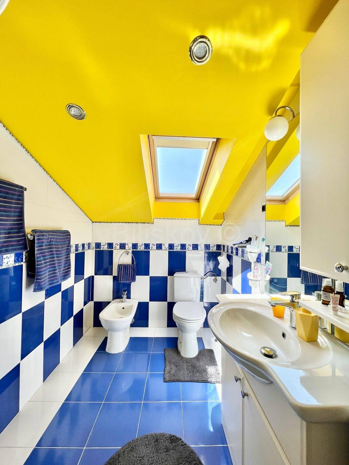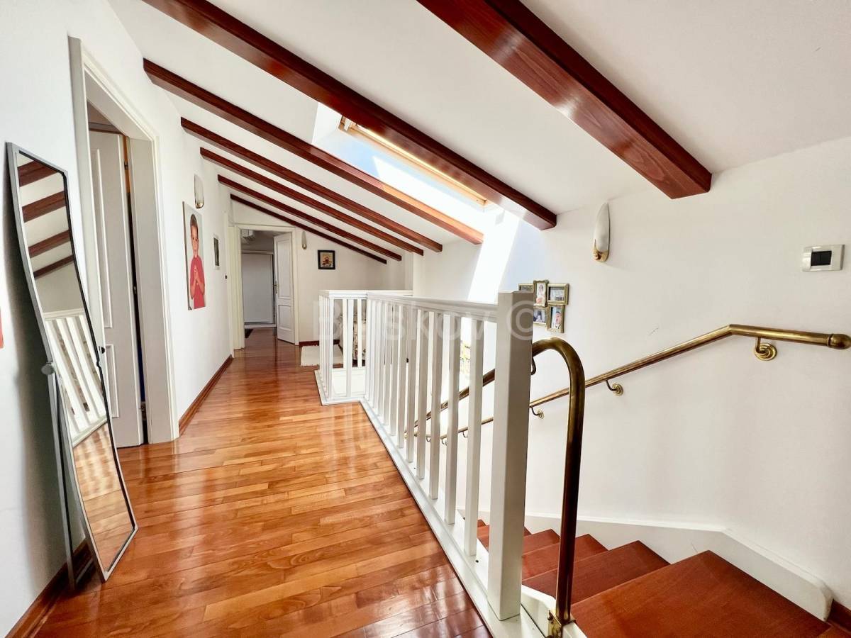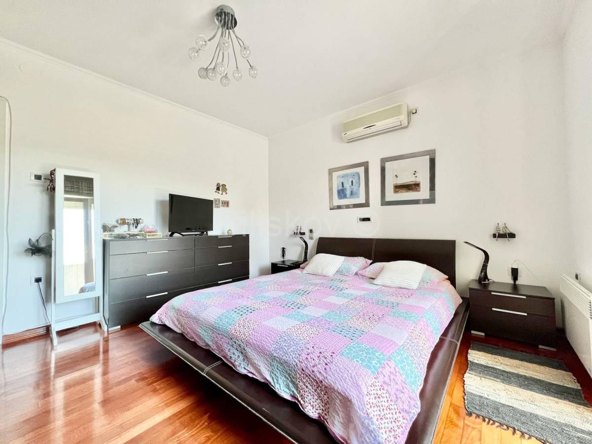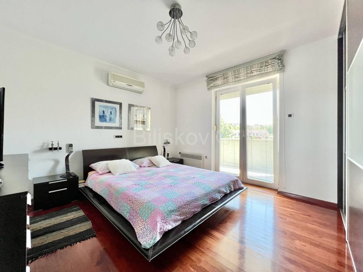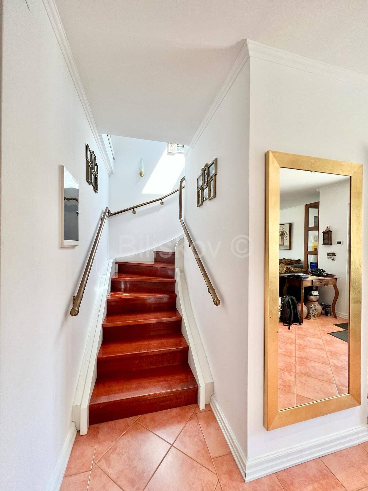 Prostrani dvoetažni peterosoban stan površine 296,39 m2 smjestio se na 2. katu i potkrovlju zgrade sagrađene 2000. godine.