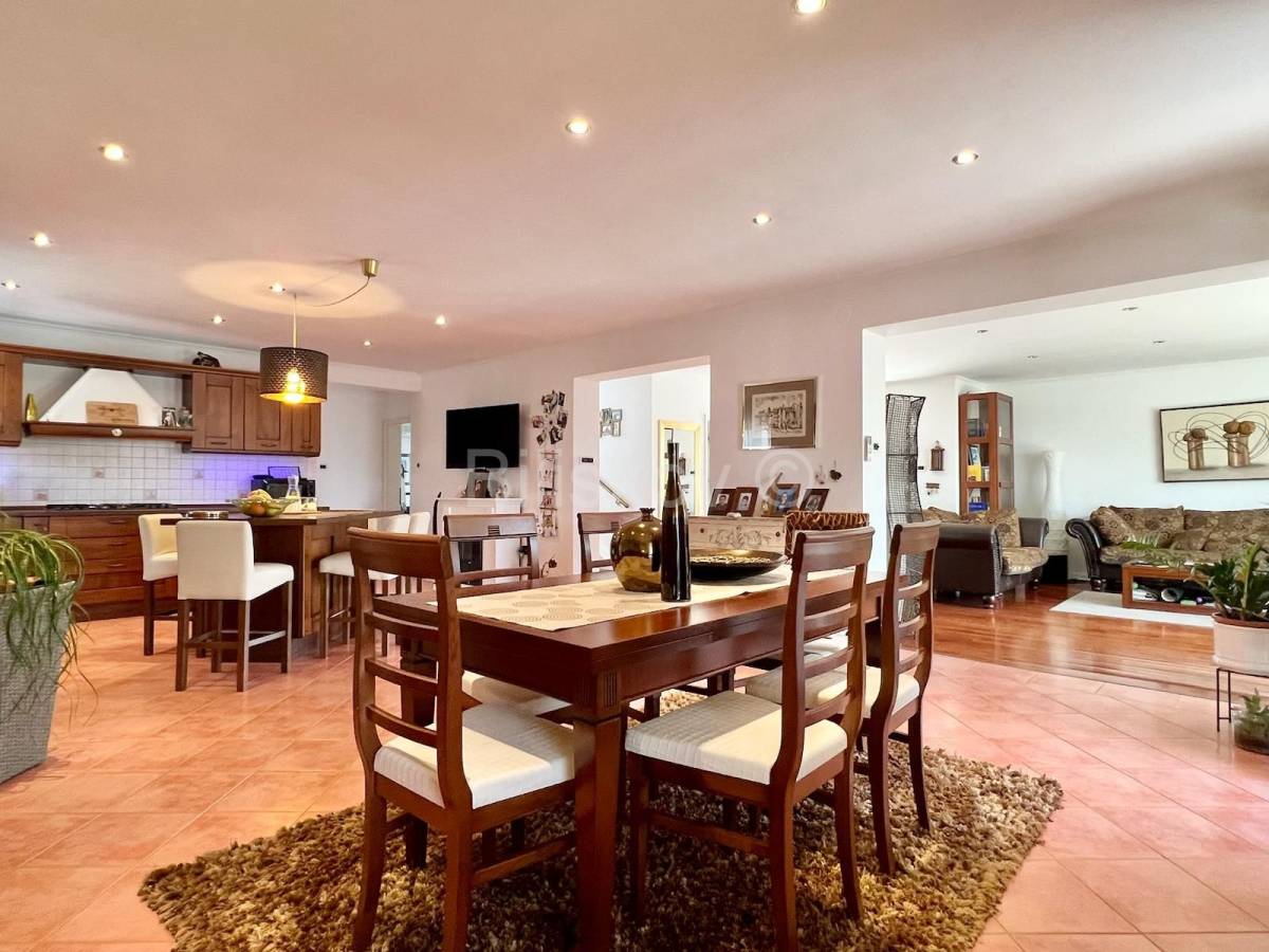 Na prvoj etaži stana nalaze se open-space dnevni boravak s blagovaonicom i kuhinjom iz kojih se izlazi na terasu, dvije sobe, loggia, kupaonica s WC-om, WC, degažman i ulazni trijem.