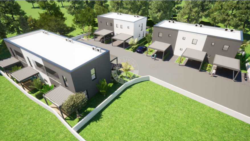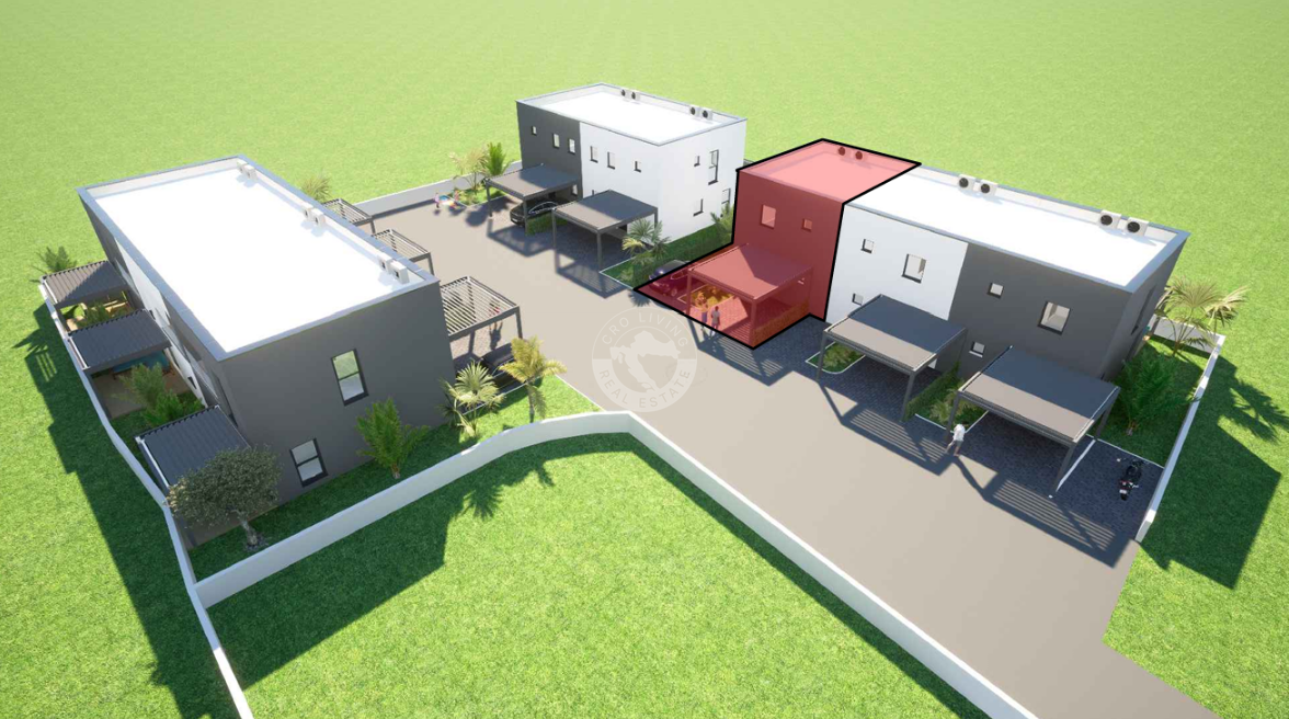 Sve kuće su dvoetažne, površine cca 200 m2, s vlastitim parkirnim mjestima. Arhitektonsko rješenje omogućuje funkcionalan raspored prostorija, prozračnost i maksimalno iskorištavanje prirodnog svjetla, s posebnim naglaskom na privatnost i udobnost stanovanja.