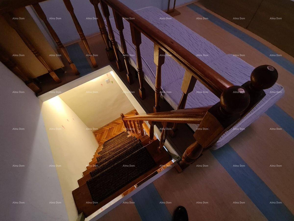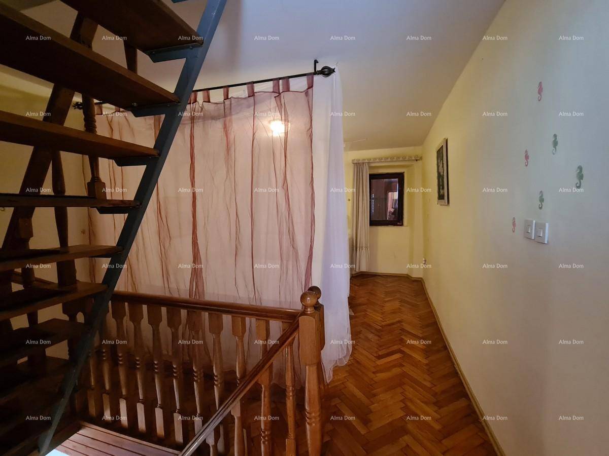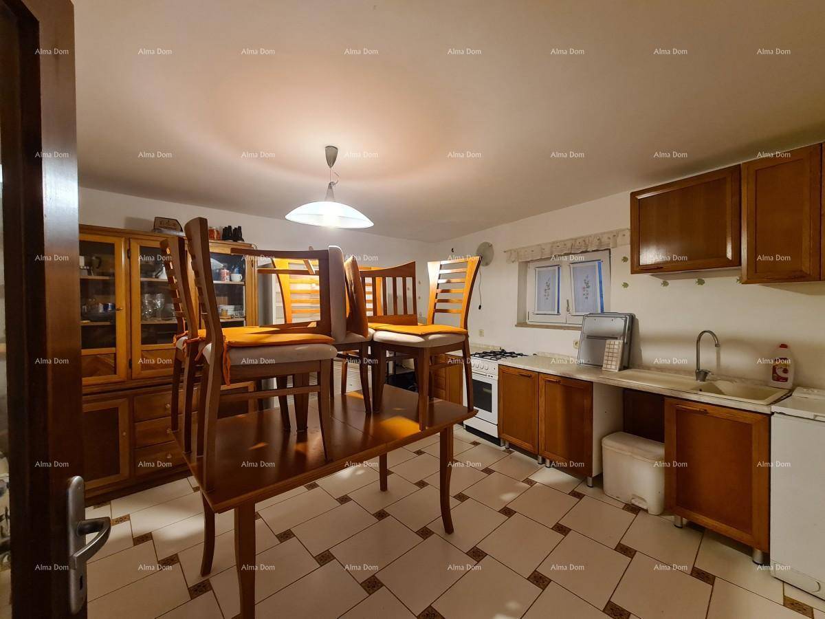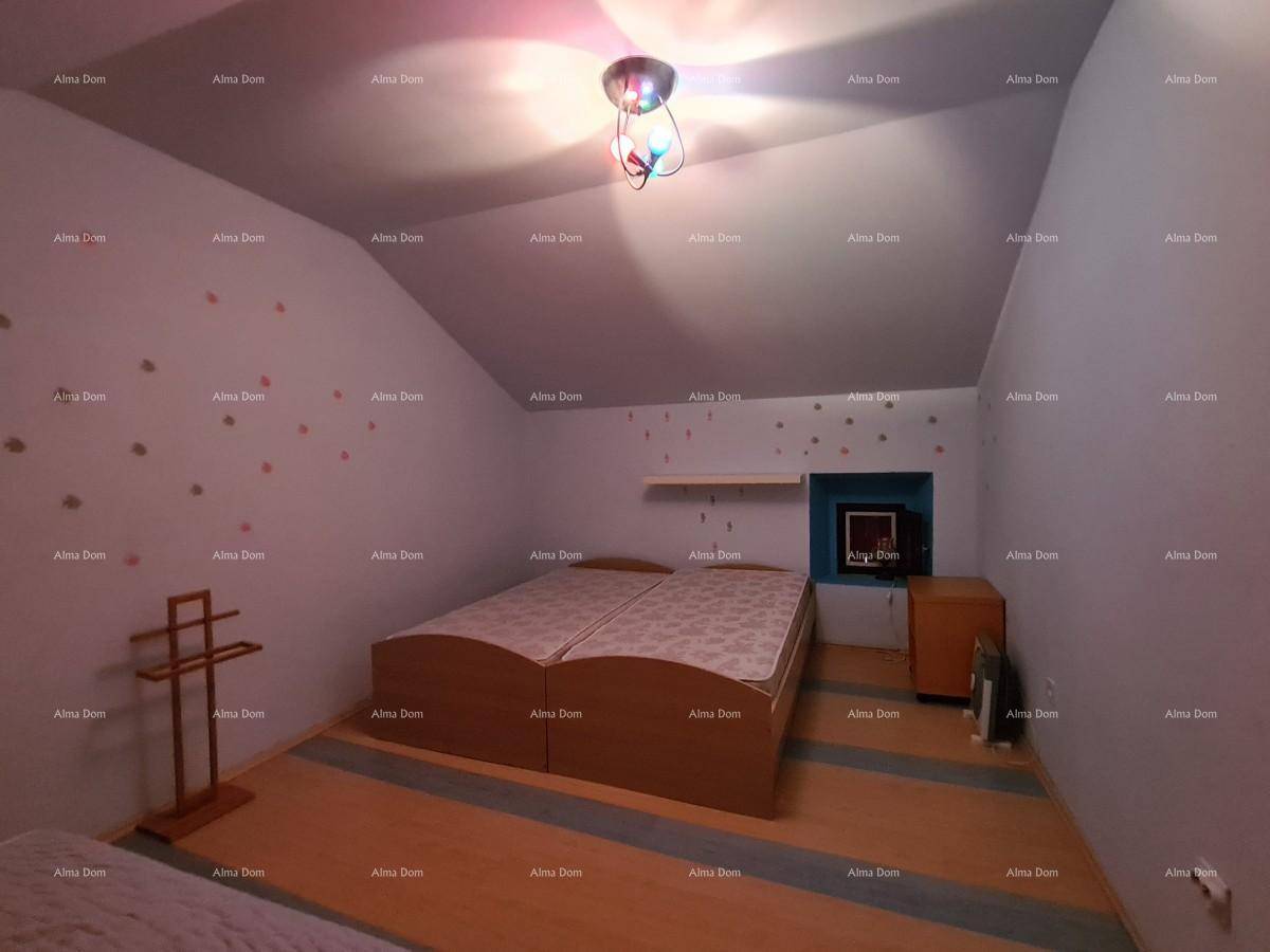 Kuća se prostire kroz prizemlje i dva kata te uključuje tri spavaće sobe, kupaonicu, kuhinju i dnevni boravak. Prostor je funkcionalan i zadržava tradicionalni istarski stil, pružajući toplinu i ugodan ambijent.