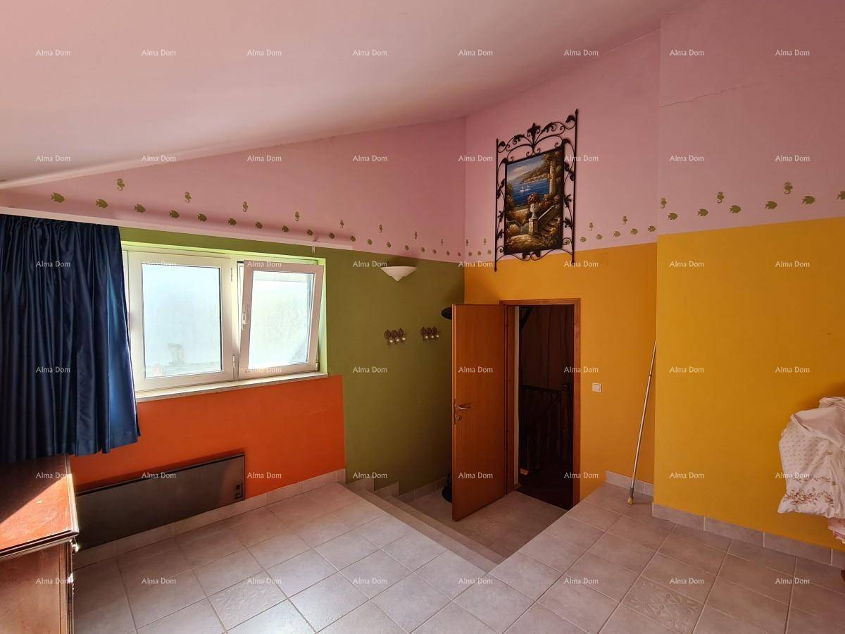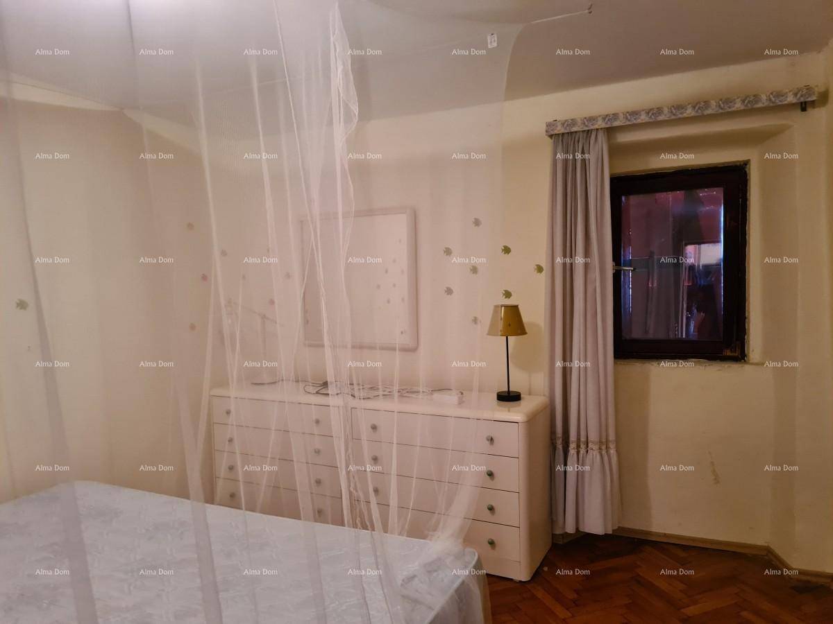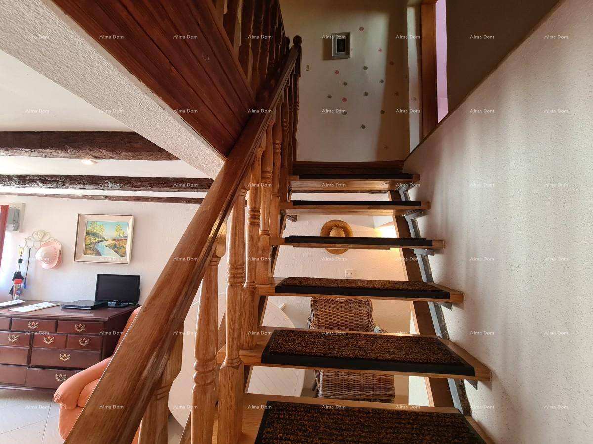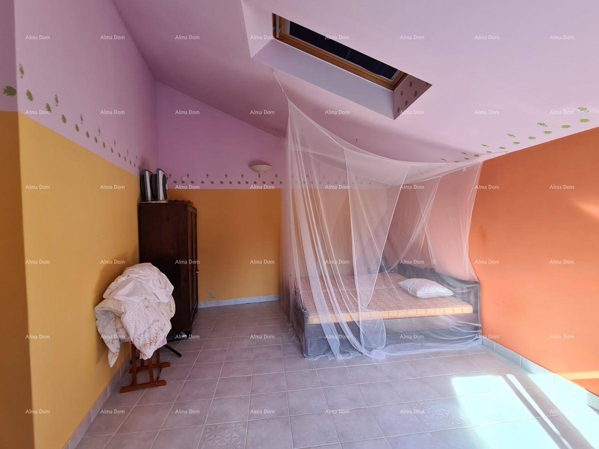 Kuća se prostire kroz prizemlje i dva kata te uključuje tri spavaće sobe, kupaonicu, kuhinju i dnevni boravak. Prostor je funkcionalan i zadržava tradicionalni istarski stil, pružajući toplinu i ugodan ambijent.