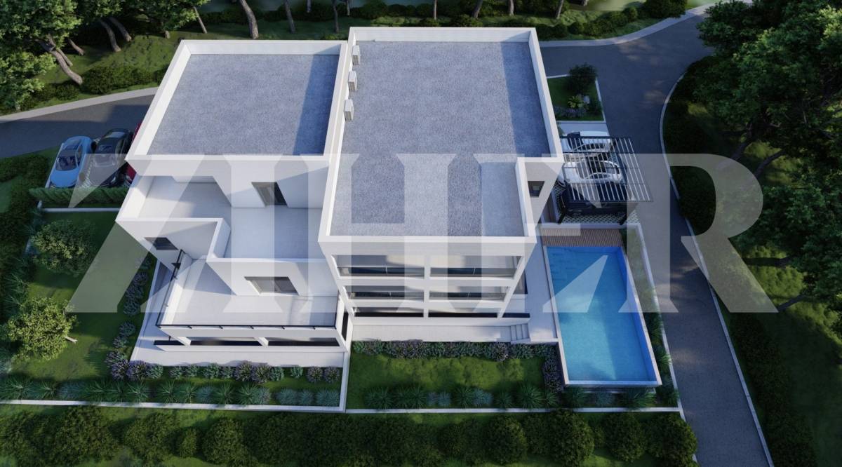 Betonska konstrukcija sa pregradnim zidovima od knaufa, fasada 15cm, Schuko AWS65 tamna ALU stolarija sa e-roletama, pločice i sanitarije od poznatih talijanskih brendova (KEOPE, GALASSIA MEG, REMER X.STYLE), podno grijanje u kupaonicama, Smart Home sustav, Toshiba klime, solarni paneli za dodatnu uštedu struje i grijanje vode.Energetski certifikat A+.